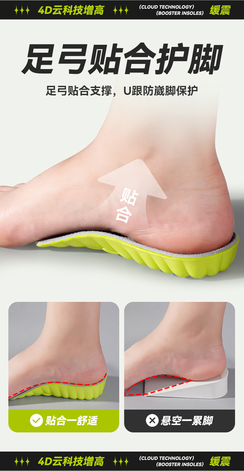 남녀공용 키높이 깔창, 스포츠용 발이 피곤하지 않은, 통기성 발뒤꿈치 키높이 깔창, 눈에 보이지 않는 내부 키높이스토어 가기