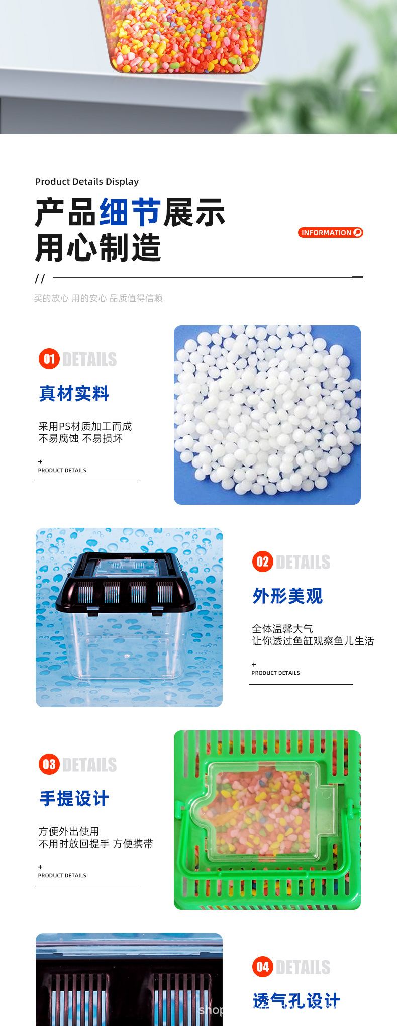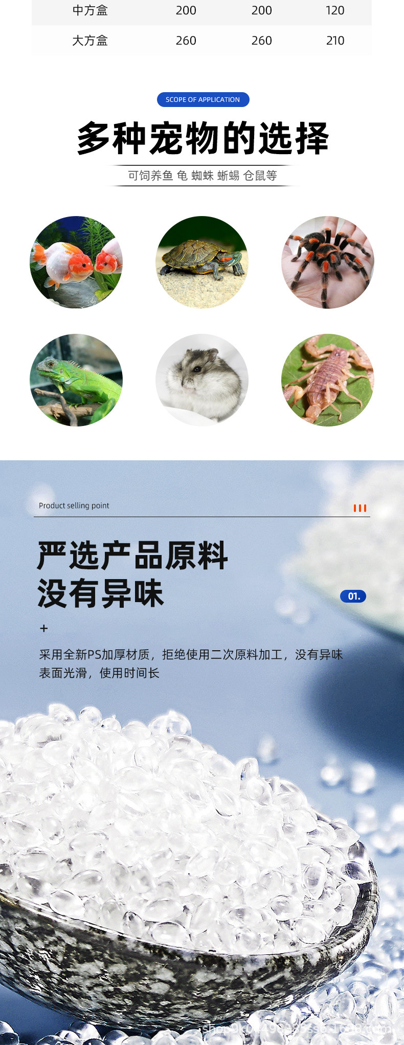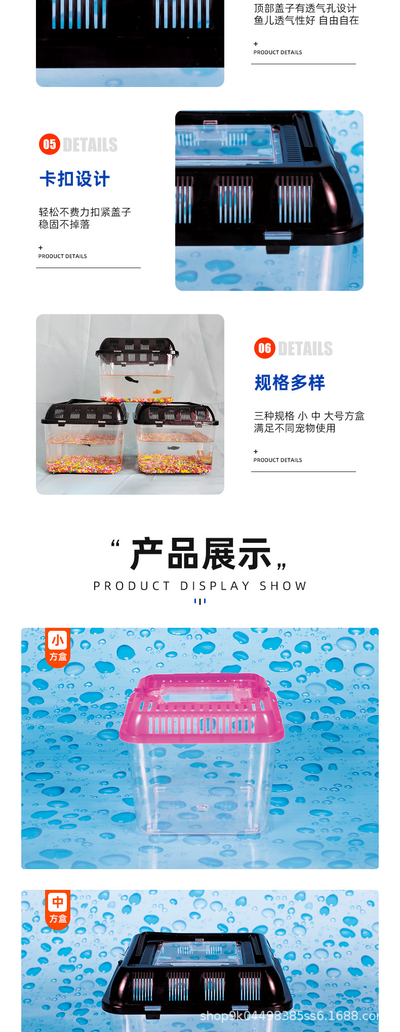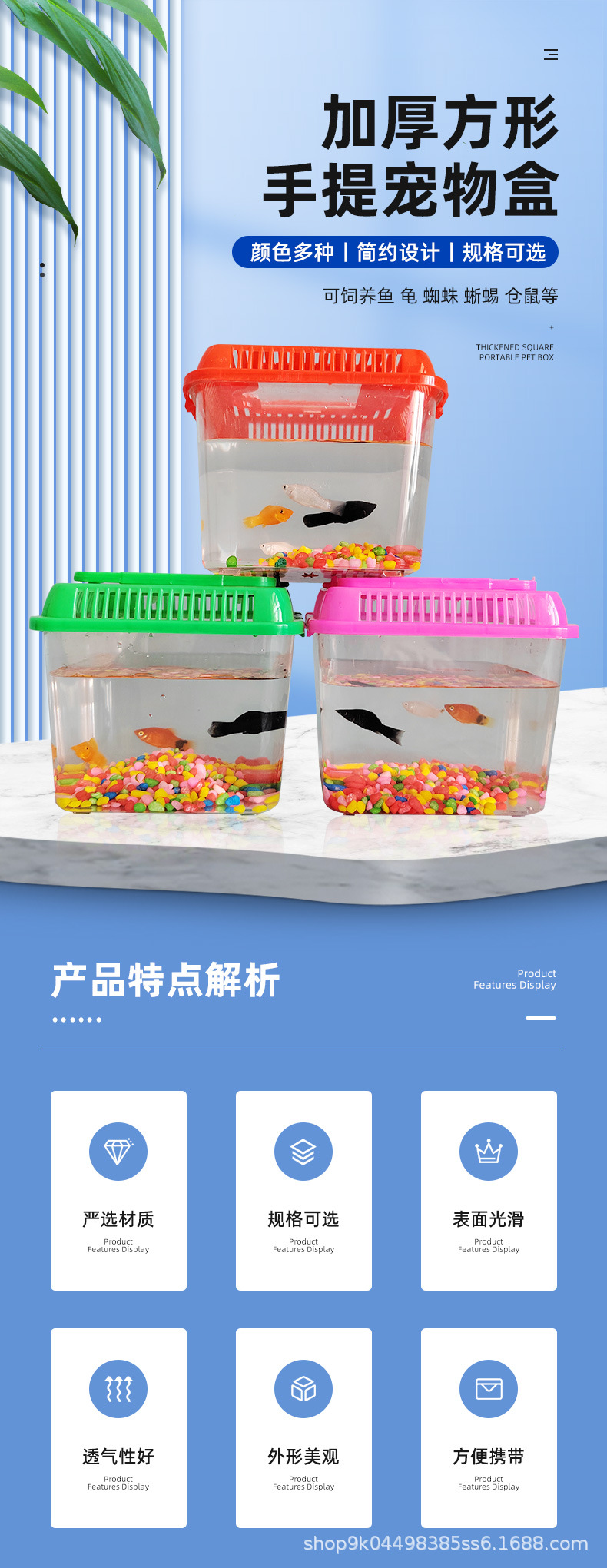 휴대용 애완 동물 상자 대형 및 중형 스몰 사이즈 플라스틱 금붕어 탱크 투명 거북이 탱크 파충류 애완 동물 먹이 수송 상자