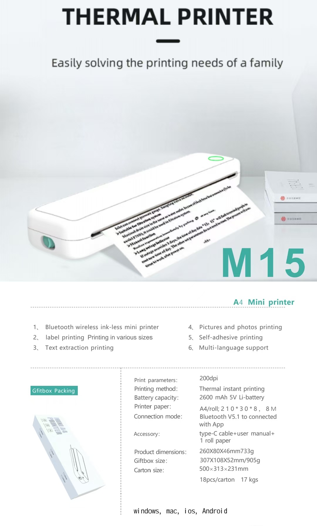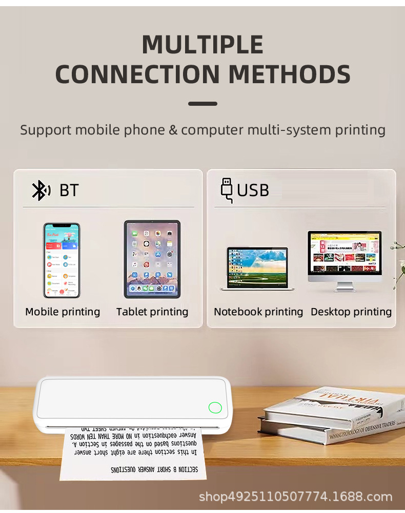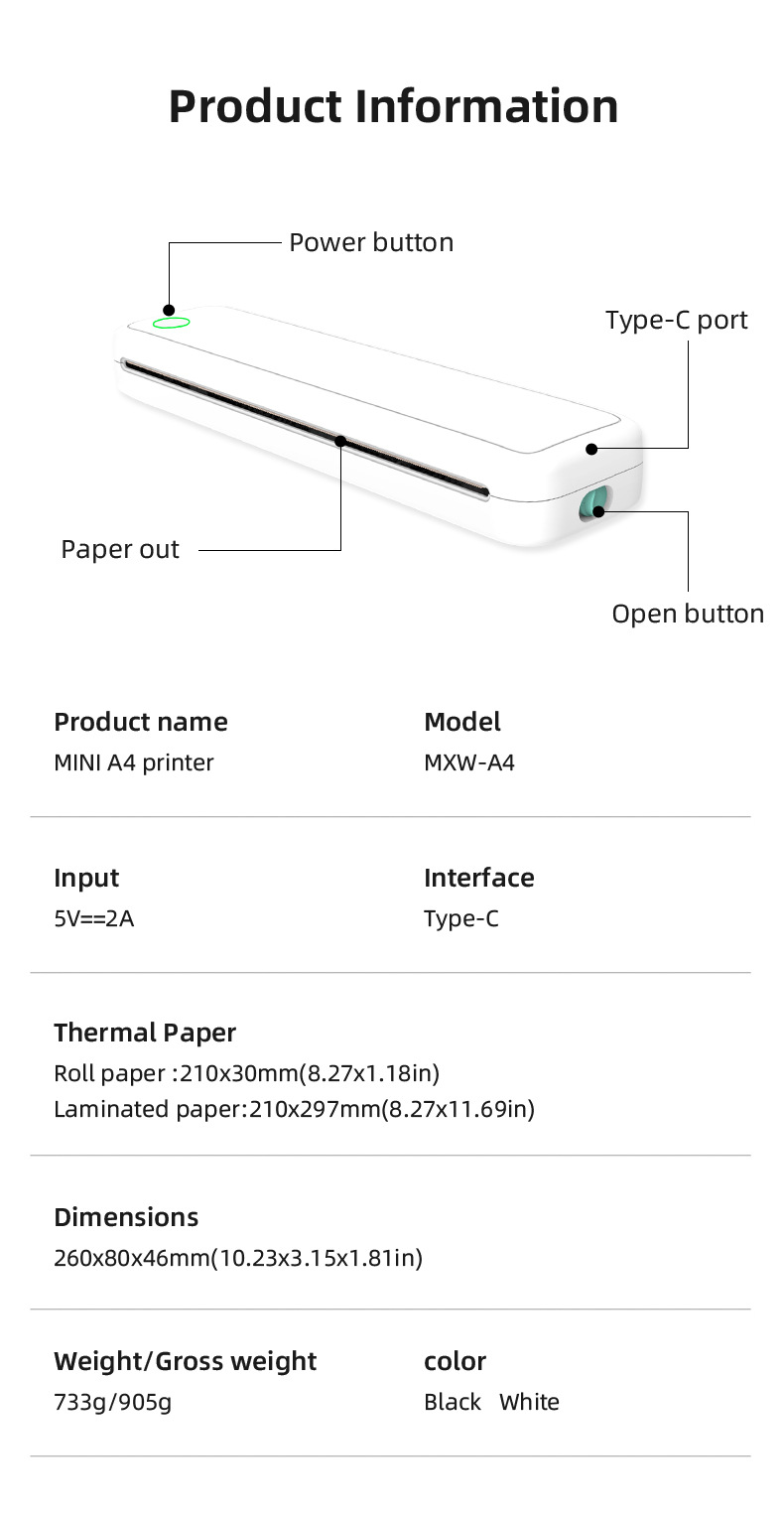 A4 잘못된 질문 프린터 학생 포켓 소형 라벨 기계 사진 블루투스 열 휴대용 미니 프린터