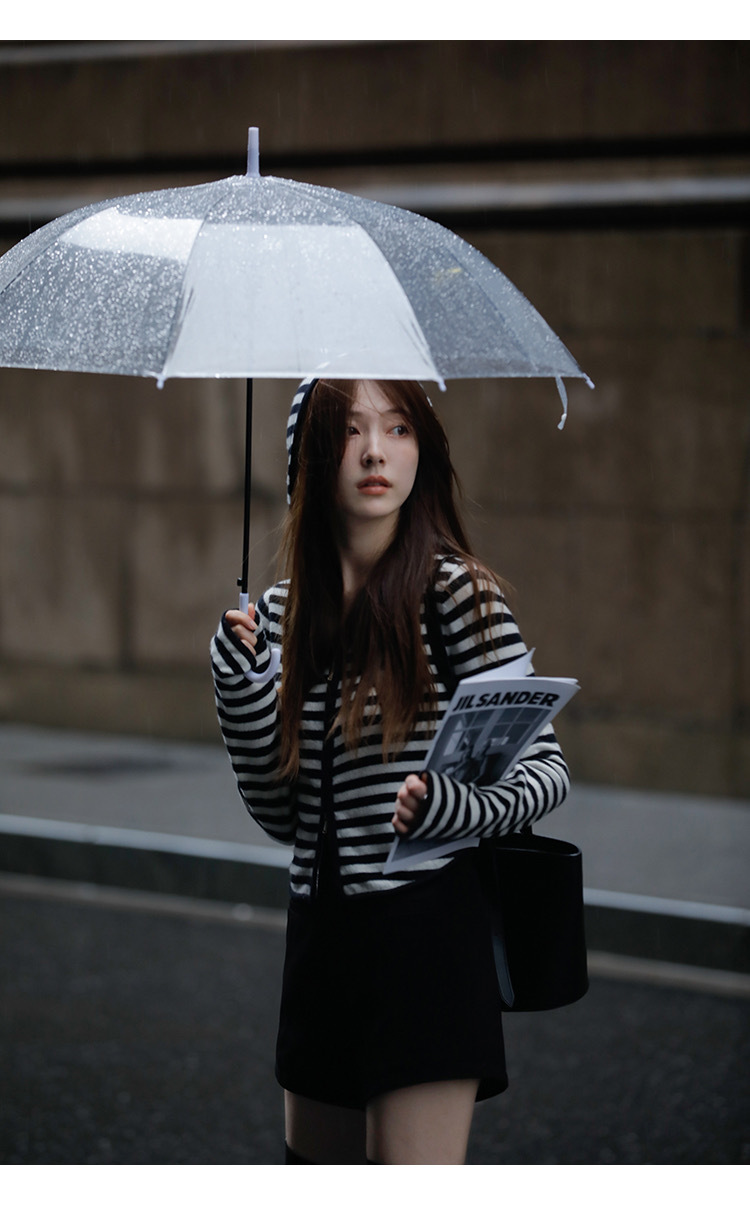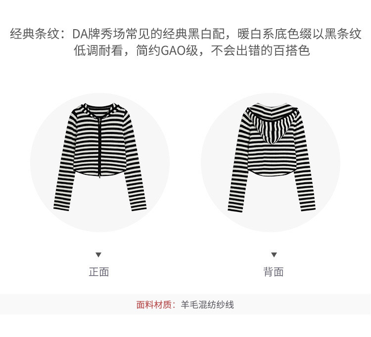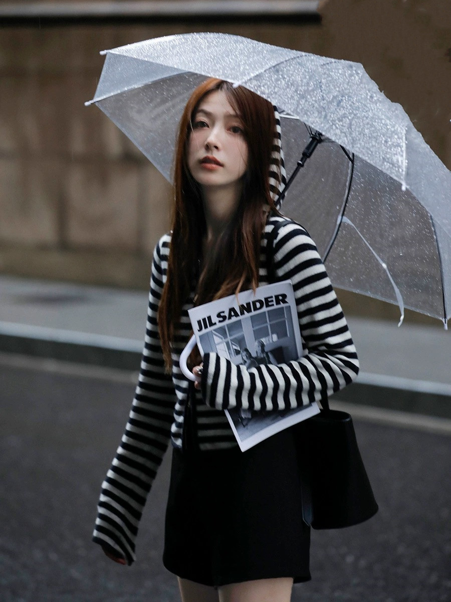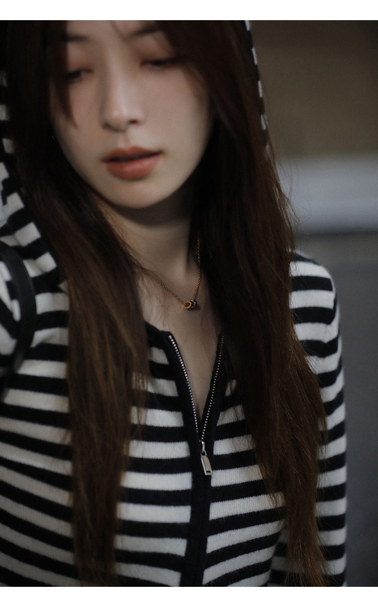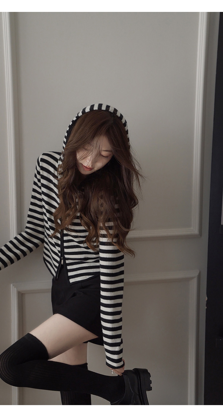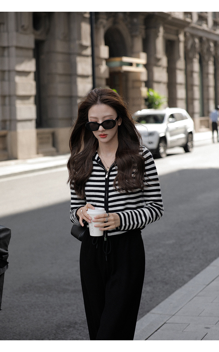 흑백 스트라이프 얇은 체인 후드 니트웨어 여성용 여름 디자인 센스 슬림핏 슬림핏 짧은 가디건 코트 여성스토어 가기