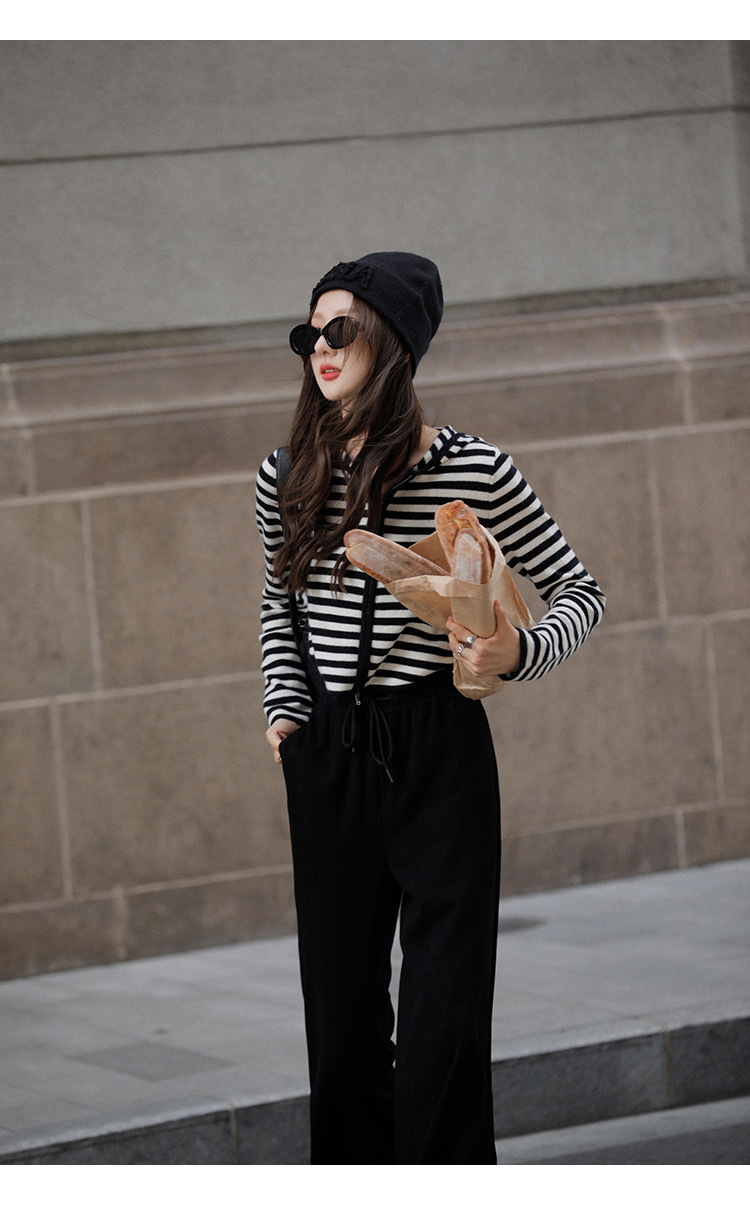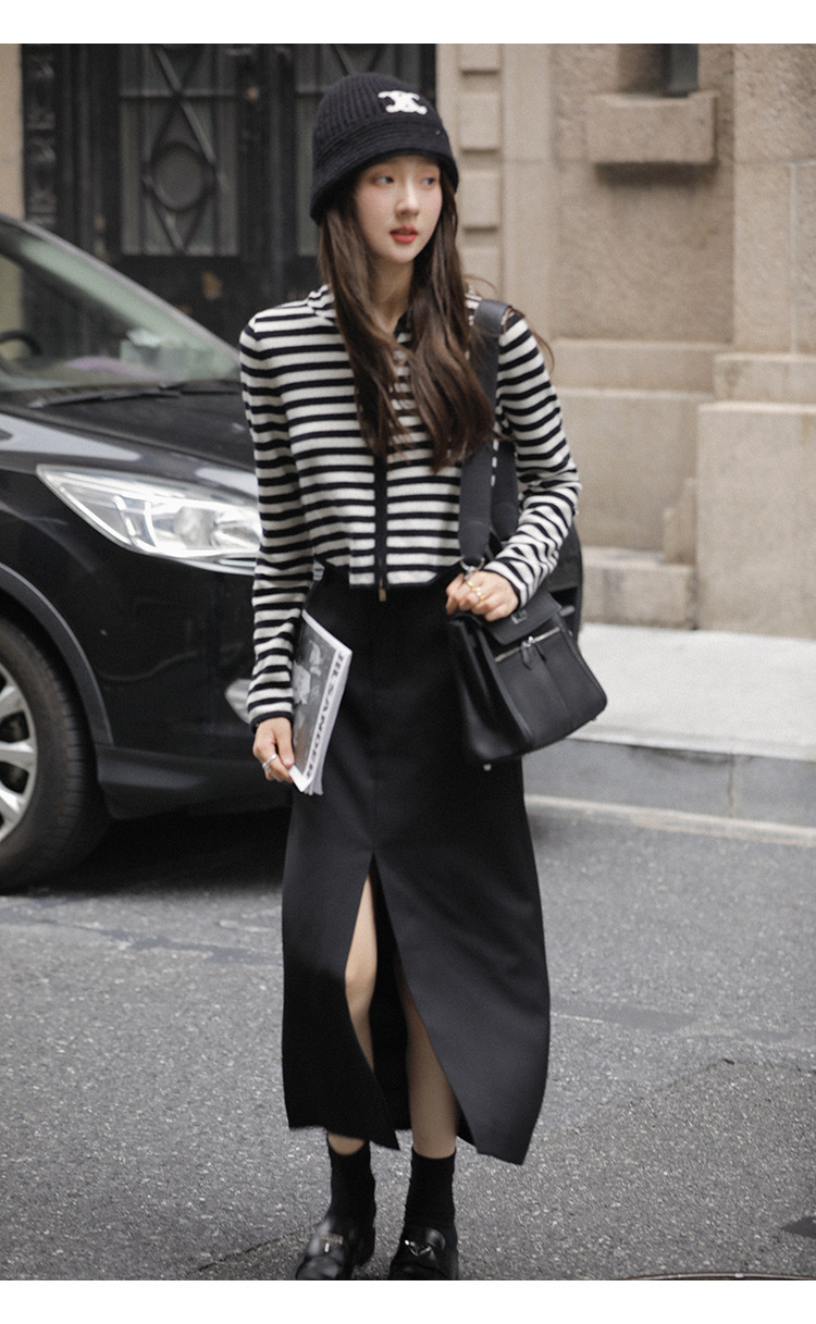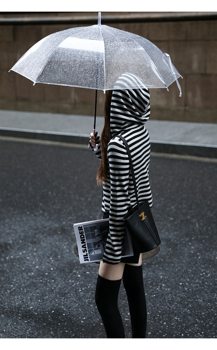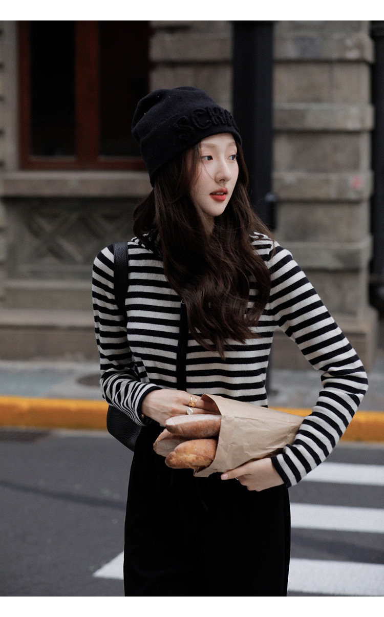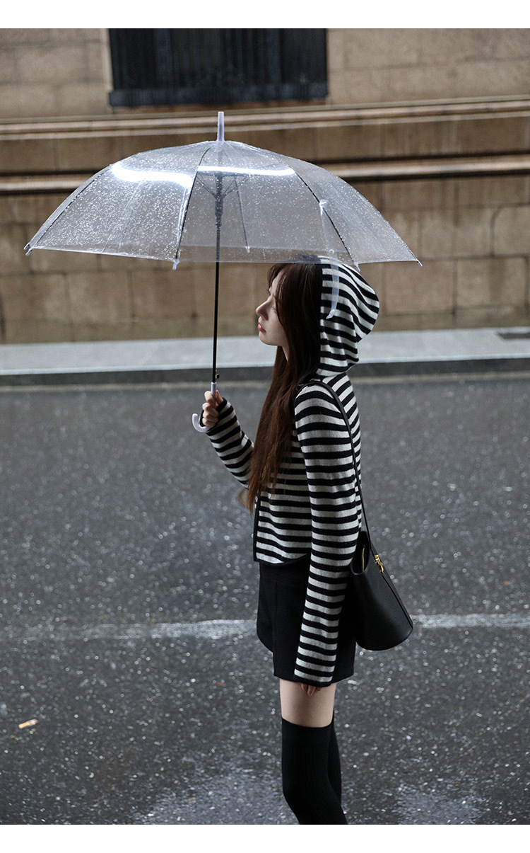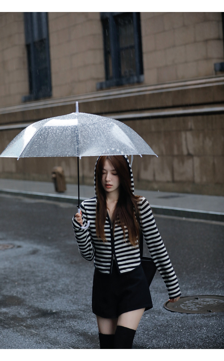 흑백 스트라이프 얇은 체인 후드 니트웨어 여성용 여름 디자인 센스 슬림핏 슬림핏 짧은 가디건 코트 여성스토어 가기