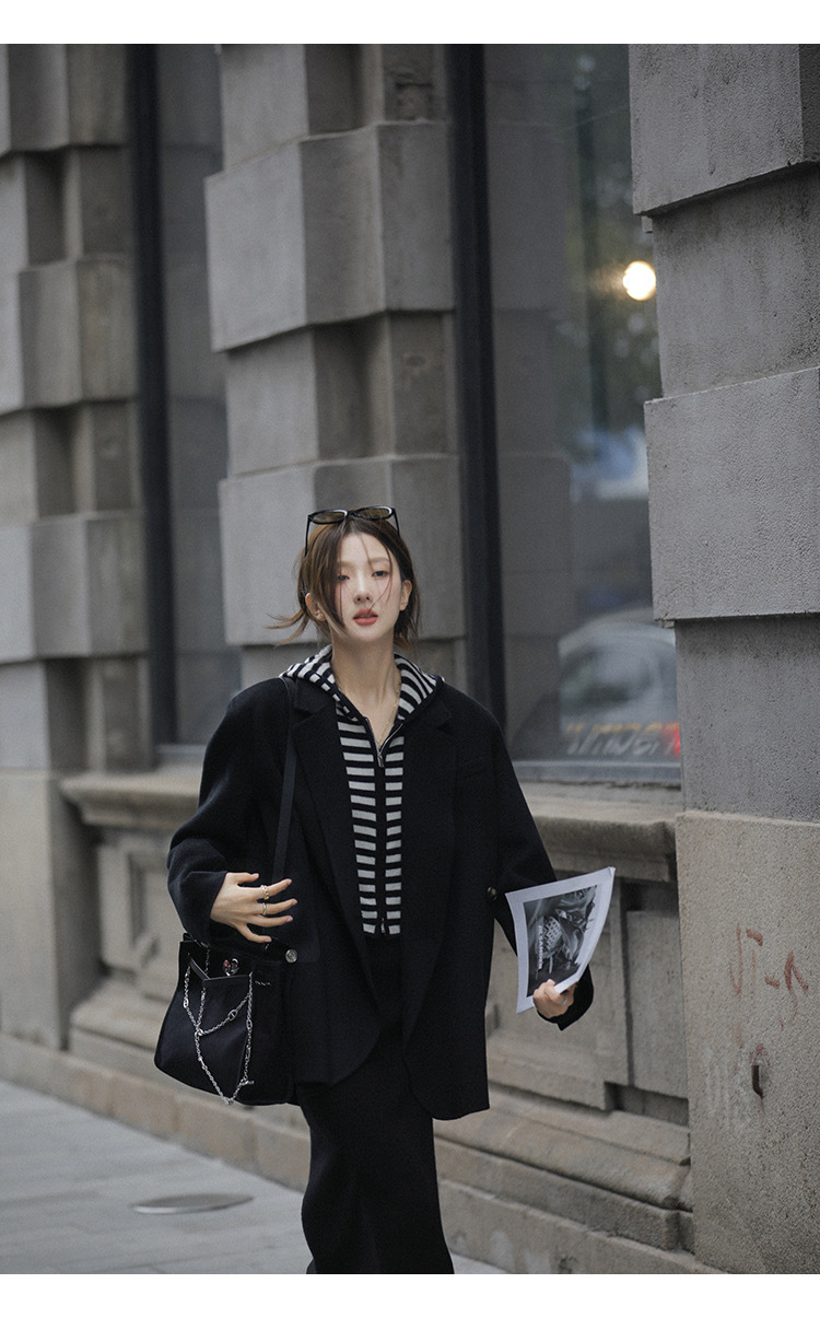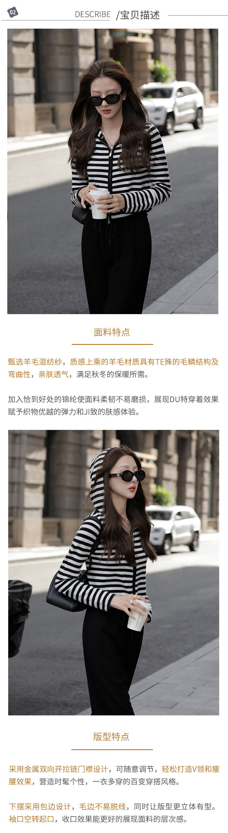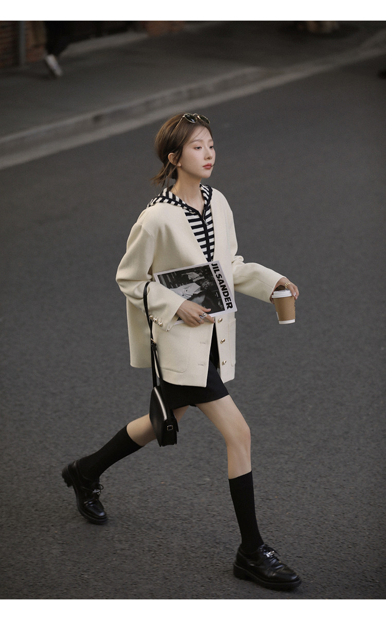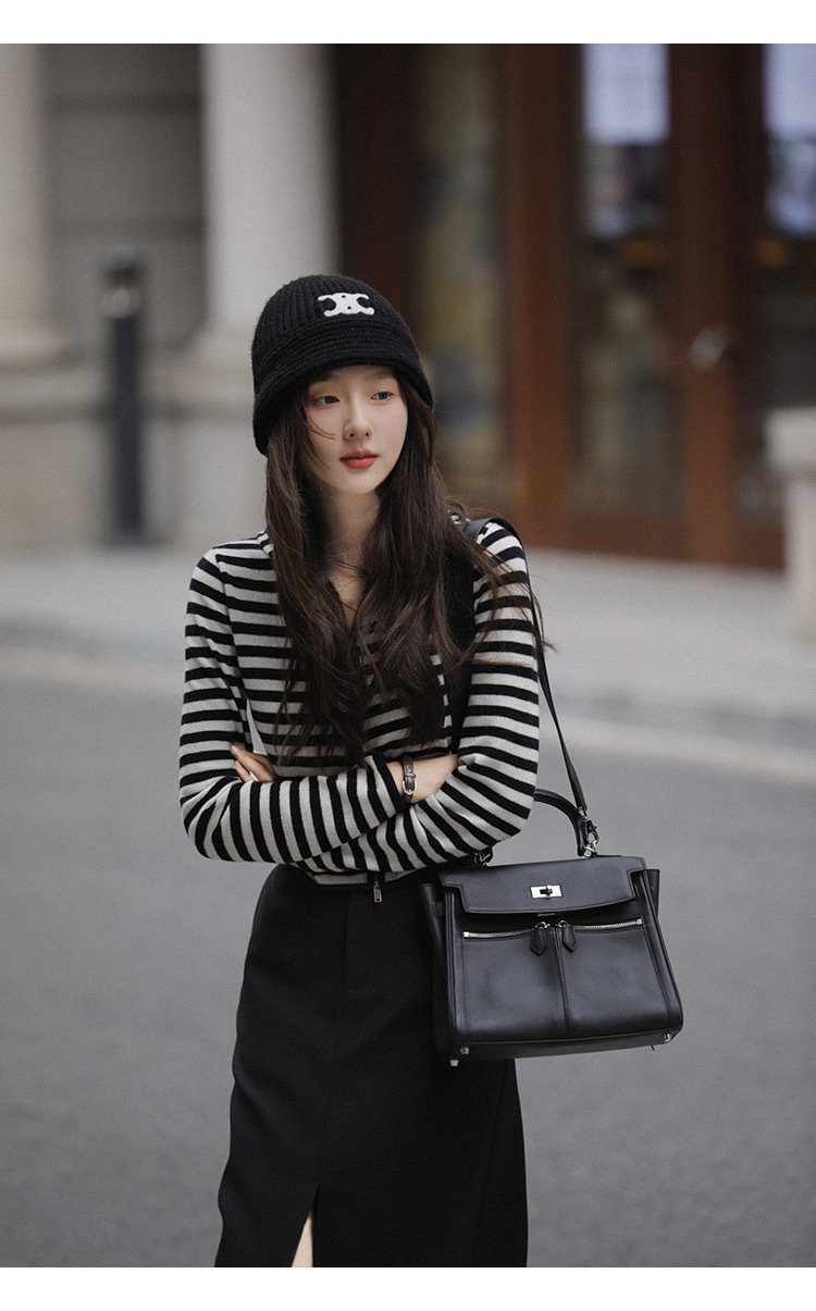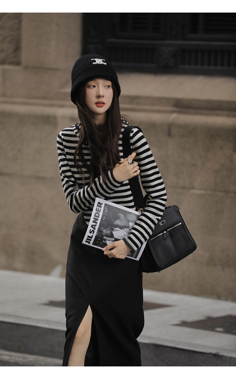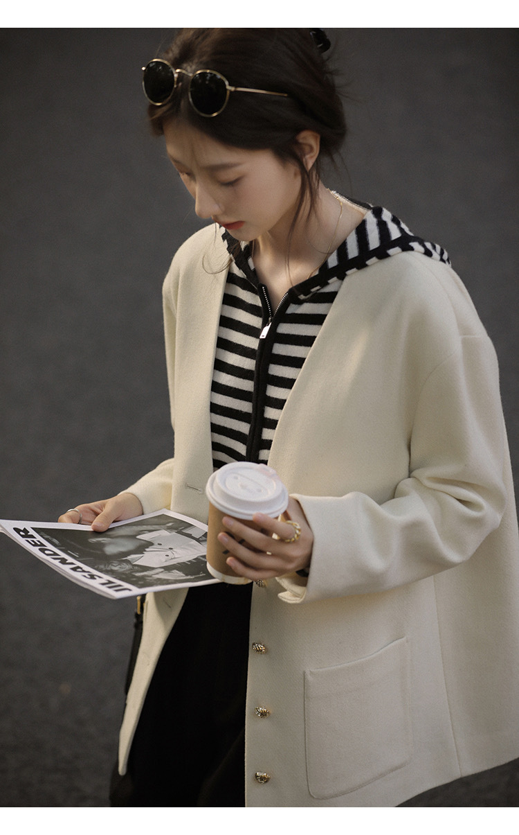 흑백 스트라이프 얇은 체인 후드 니트웨어 여성용 여름 디자인 센스 슬림핏 슬림핏 짧은 가디건 코트 여성스토어 가기