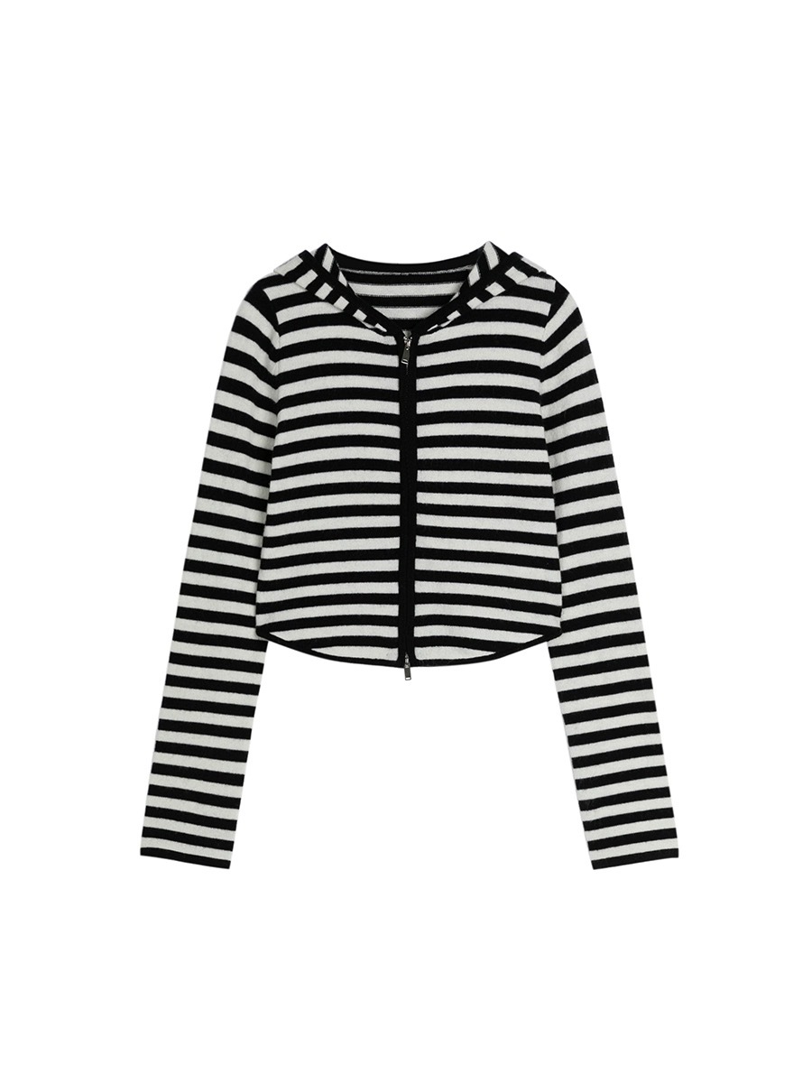 흑백 스트라이프 얇은 체인 후드 니트웨어 여성용 여름 디자인 센스 슬림핏 슬림핏 짧은 가디건 코트 여성