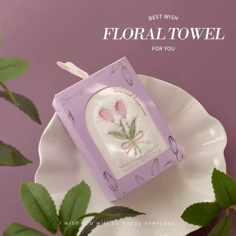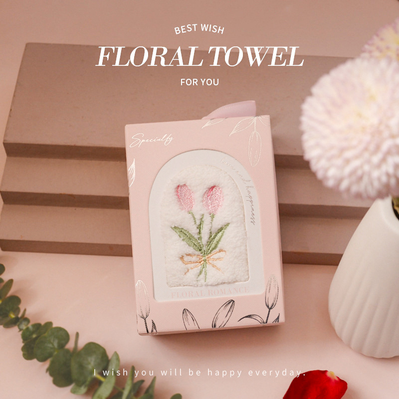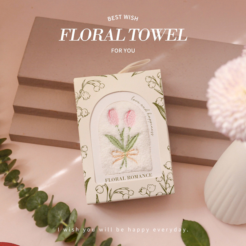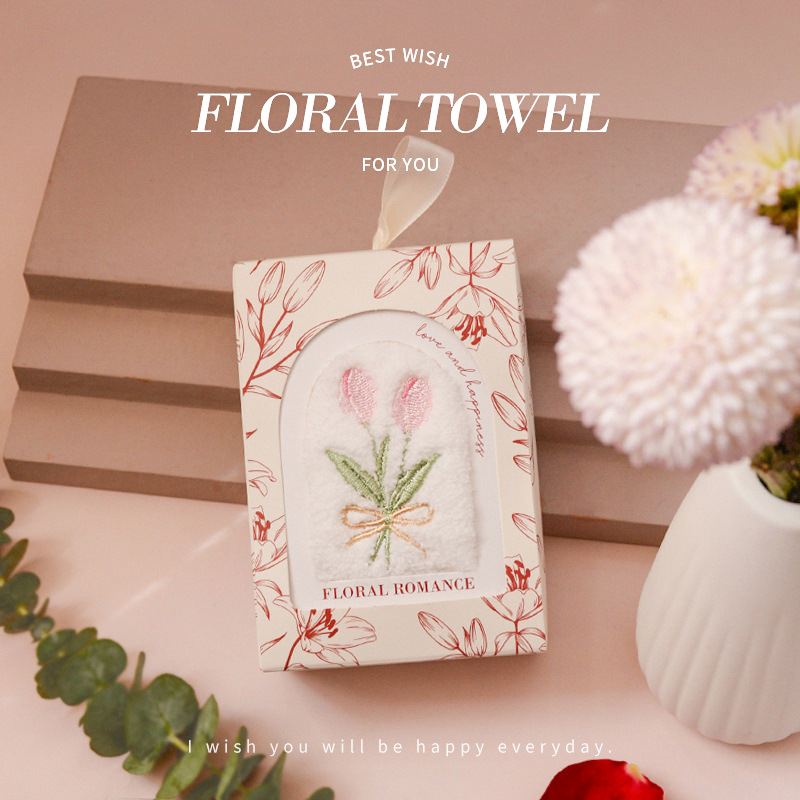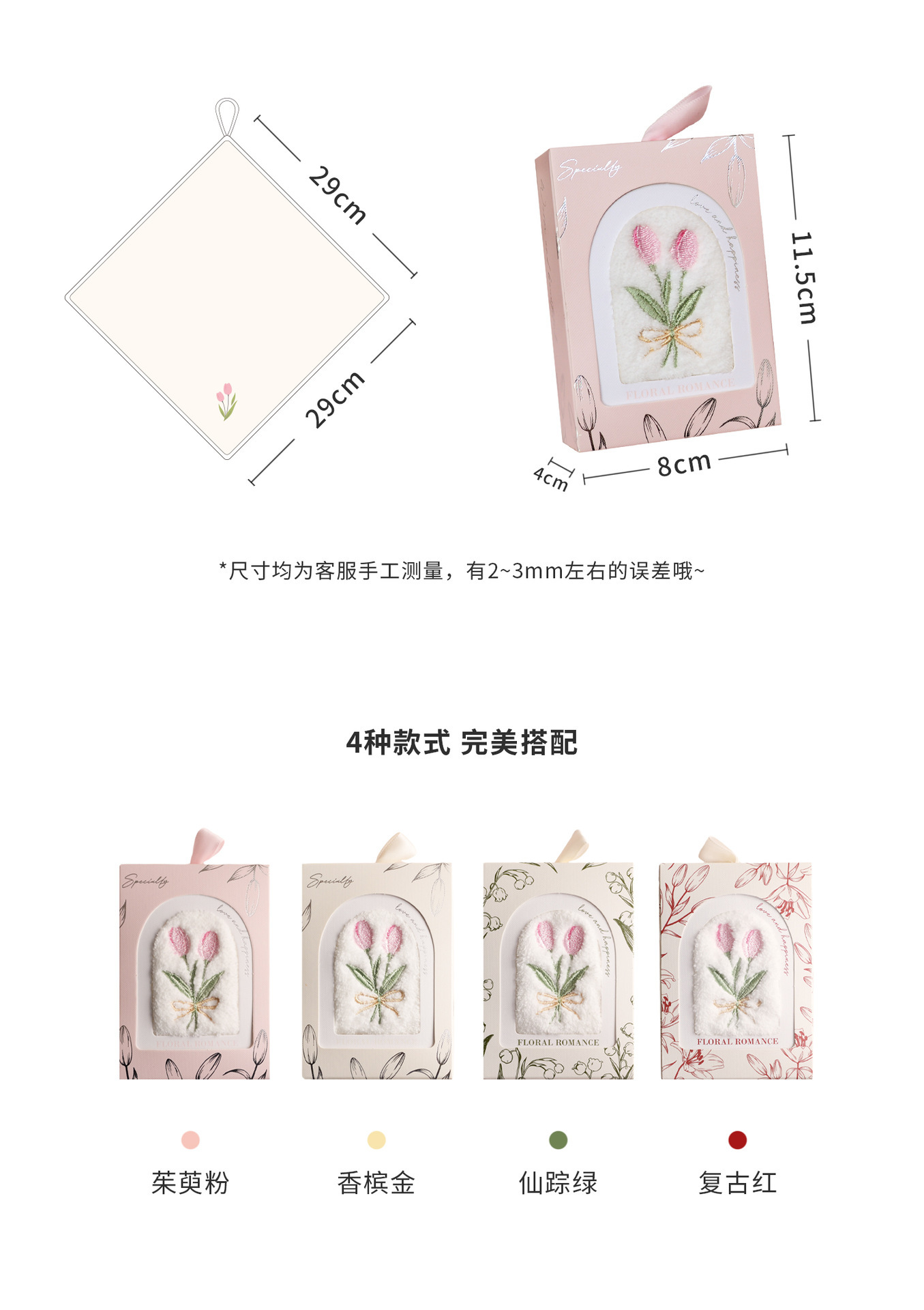 튤립 자수 손 선물 타월 작은 선물 도매 웨딩 얼굴 사각 타월 웨딩 들러리 타월 손수건스토어 가기