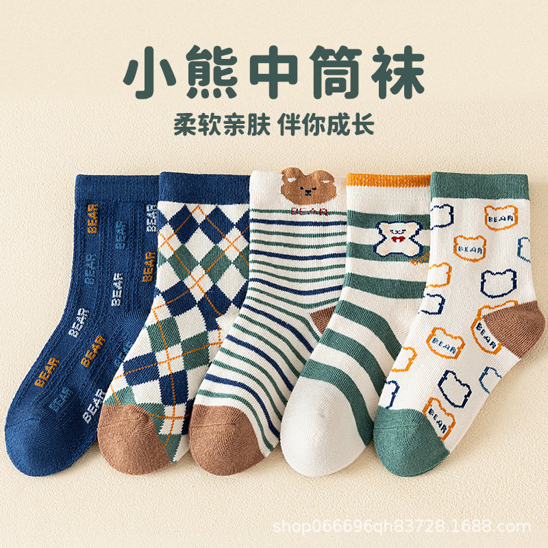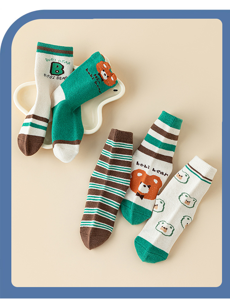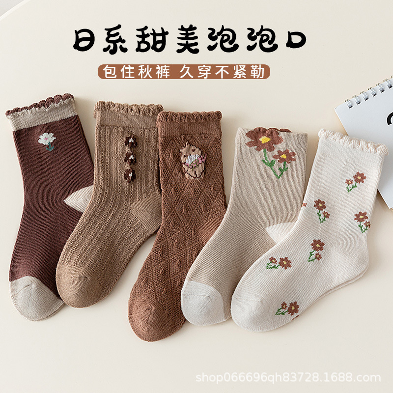 어린이 양말 소년 봄과 가을 새로운 소녀 가을과 겨울 학생 중간 긴 튜브 아기 땀 흡수 만화 공룡 양말