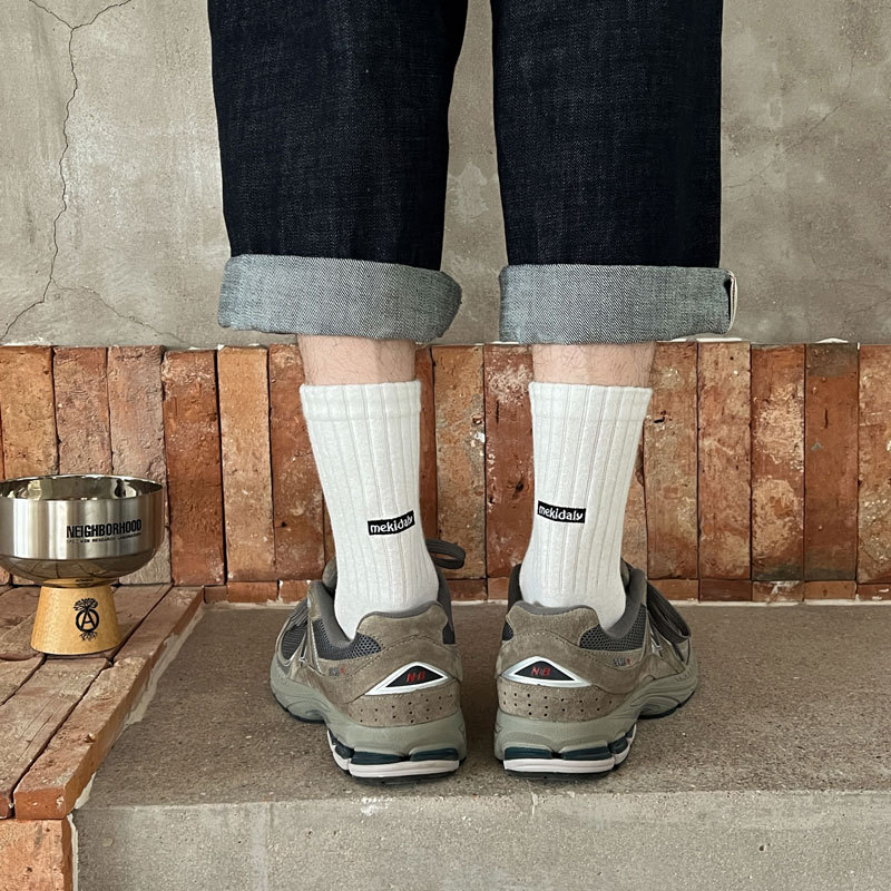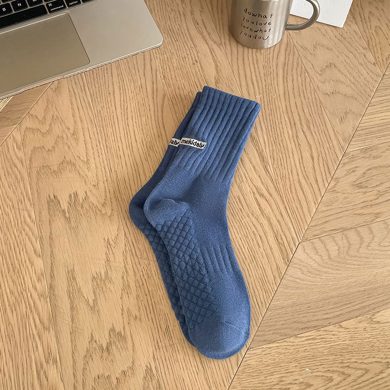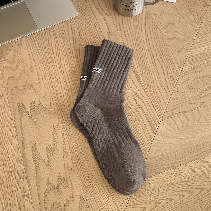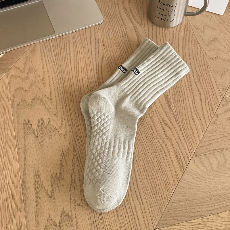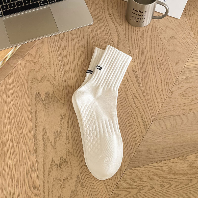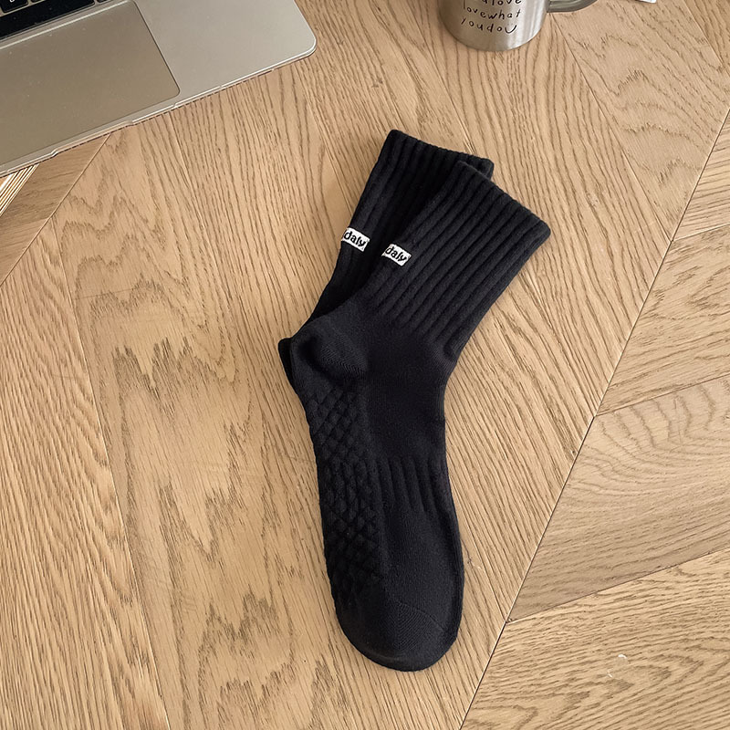 양말 남자의 단색 뒤꿈치 영어 자수 캐주얼 튜브 양말 발 마사지 간단한 흑백 남성 양말스토어 가기