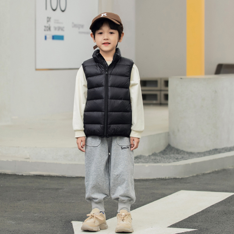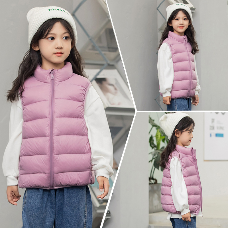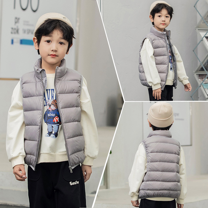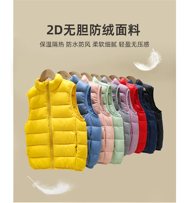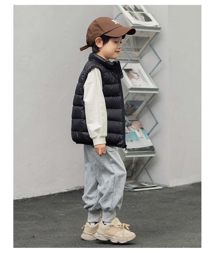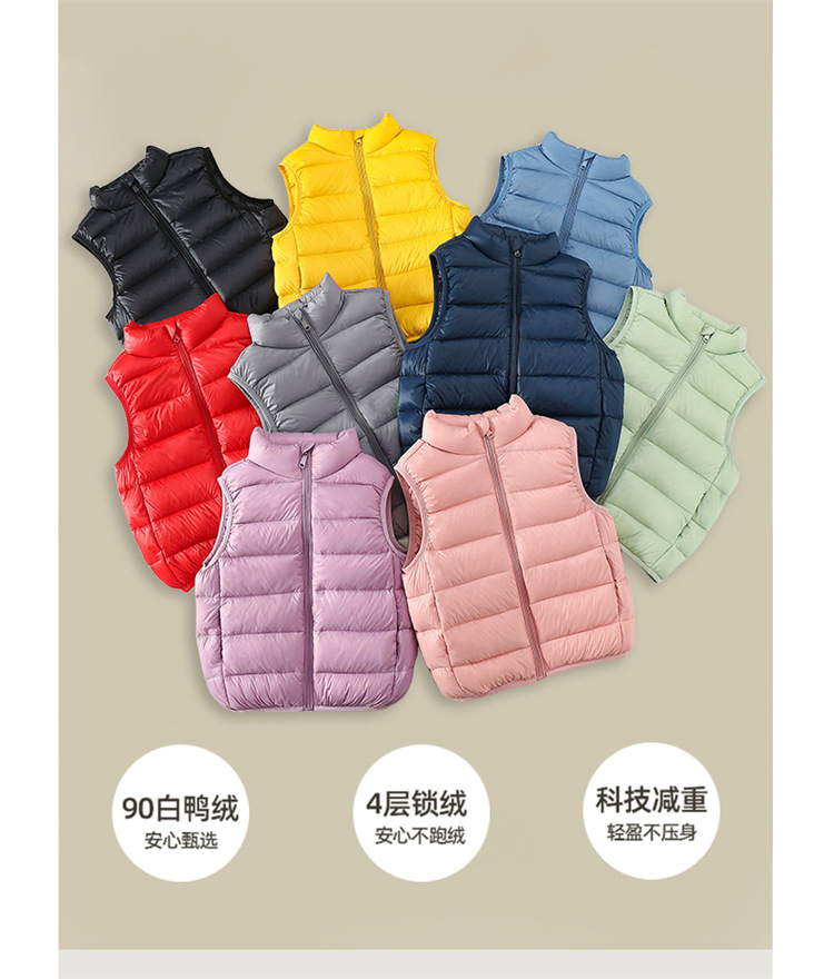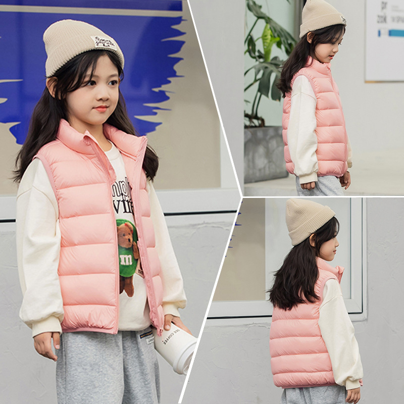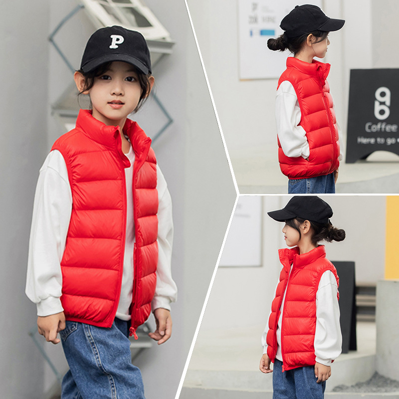 어린이의 가볍고 얇은 방풍 조끼 가을, 겨울 새로운 스타일 중대형 어린이 깃털 벨벳 실크 소년 소녀 아기 겉옷