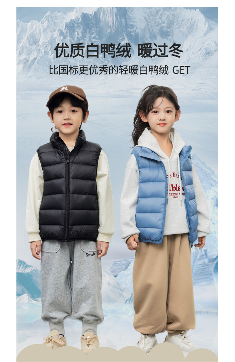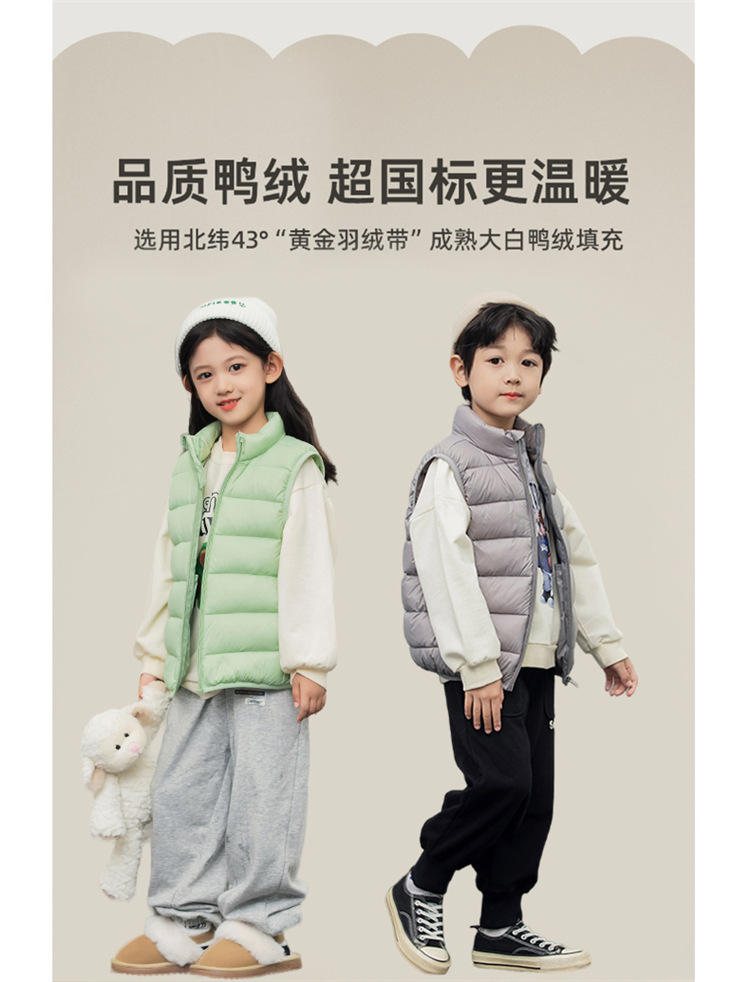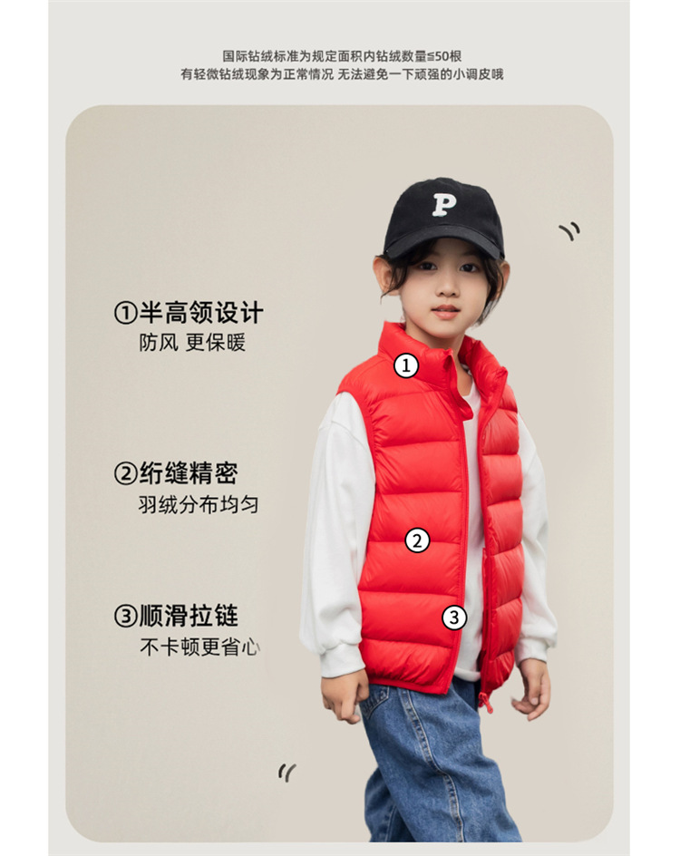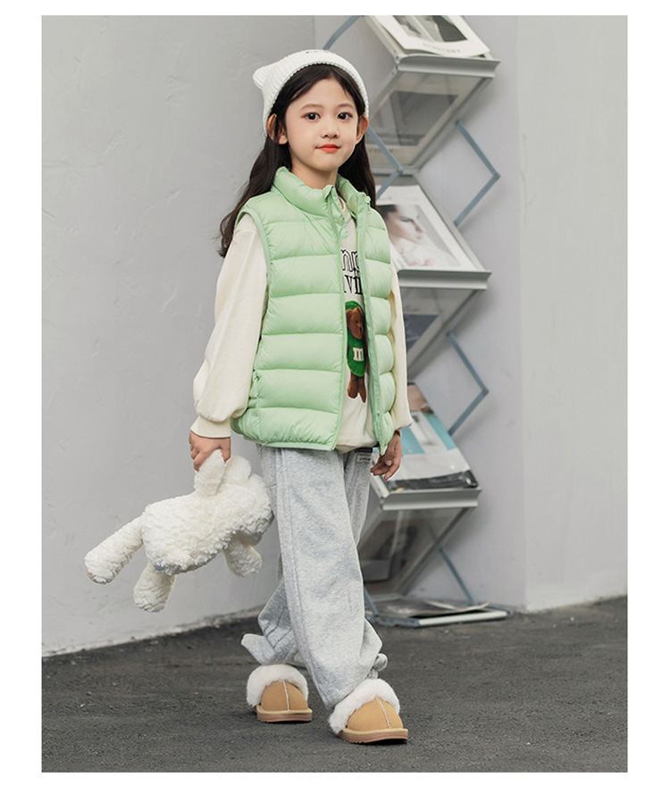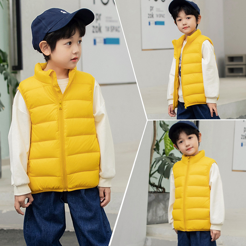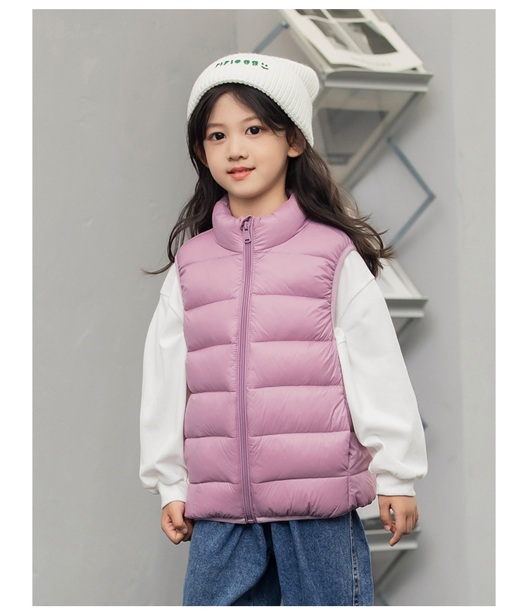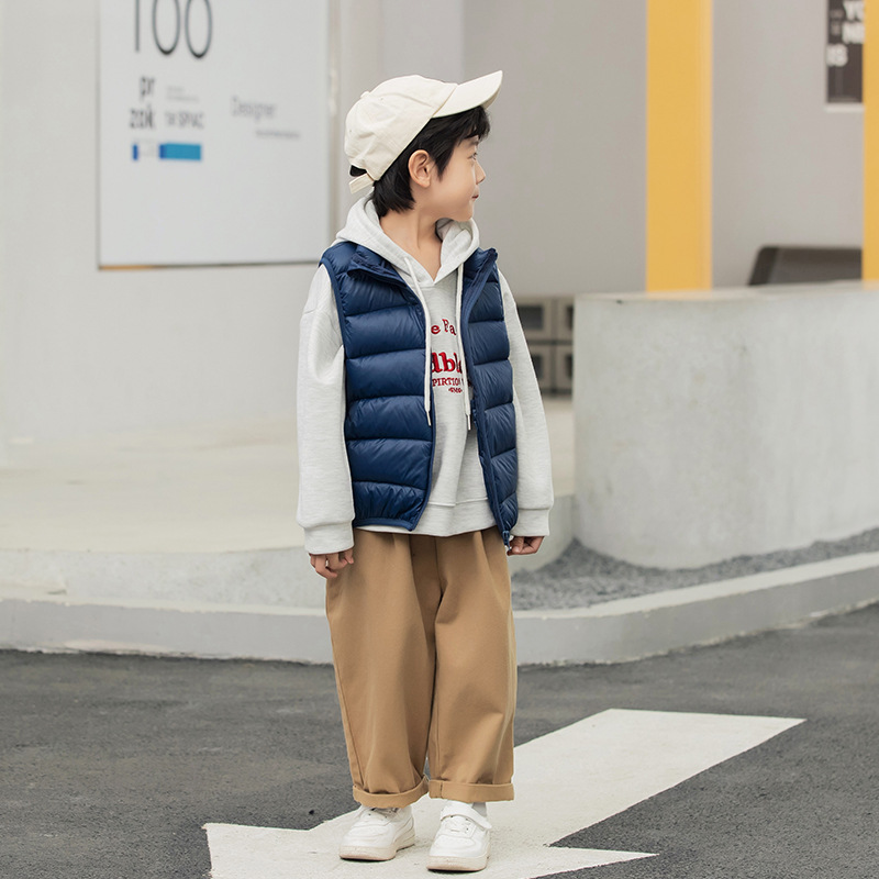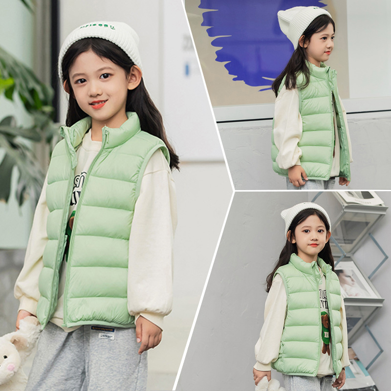 어린이의 가볍고 얇은 방풍 조끼 가을, 겨울 새로운 스타일 중대형 어린이 깃털 벨벳 실크 소년 소녀 아기 겉옷