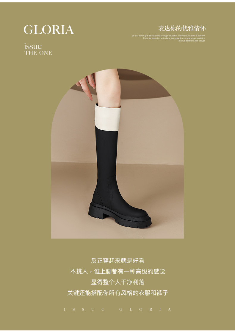 화려하지 않은 Feichi 긴 다리 ~ 가죽 라운드 헤드 컬러에 어울리는 두꺼운 밑창 나이트 부츠 여성용 2023 다용도 청키 힐 부츠스토어 가기