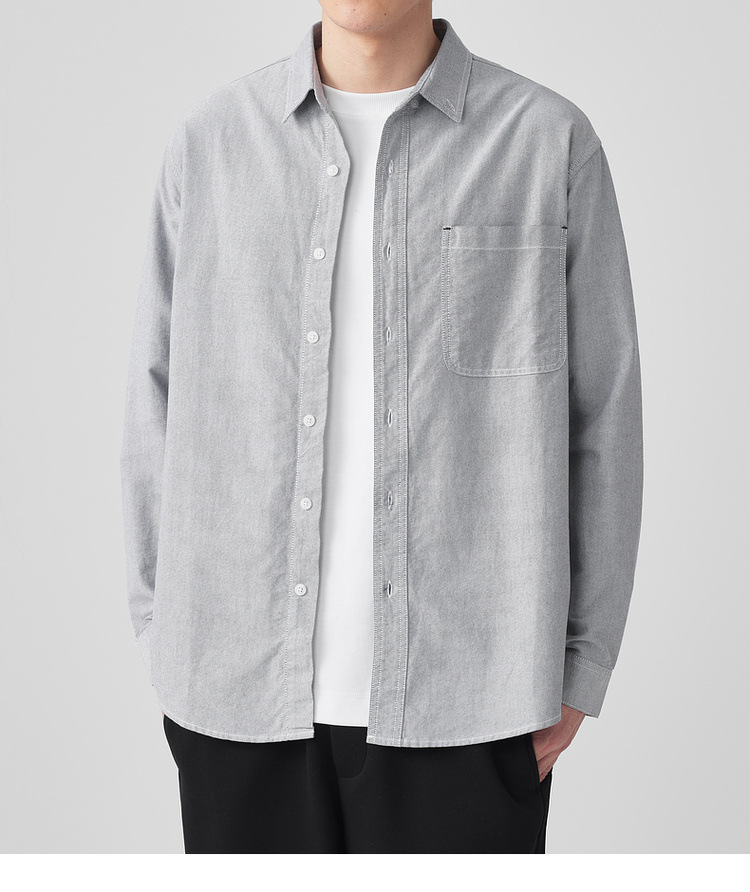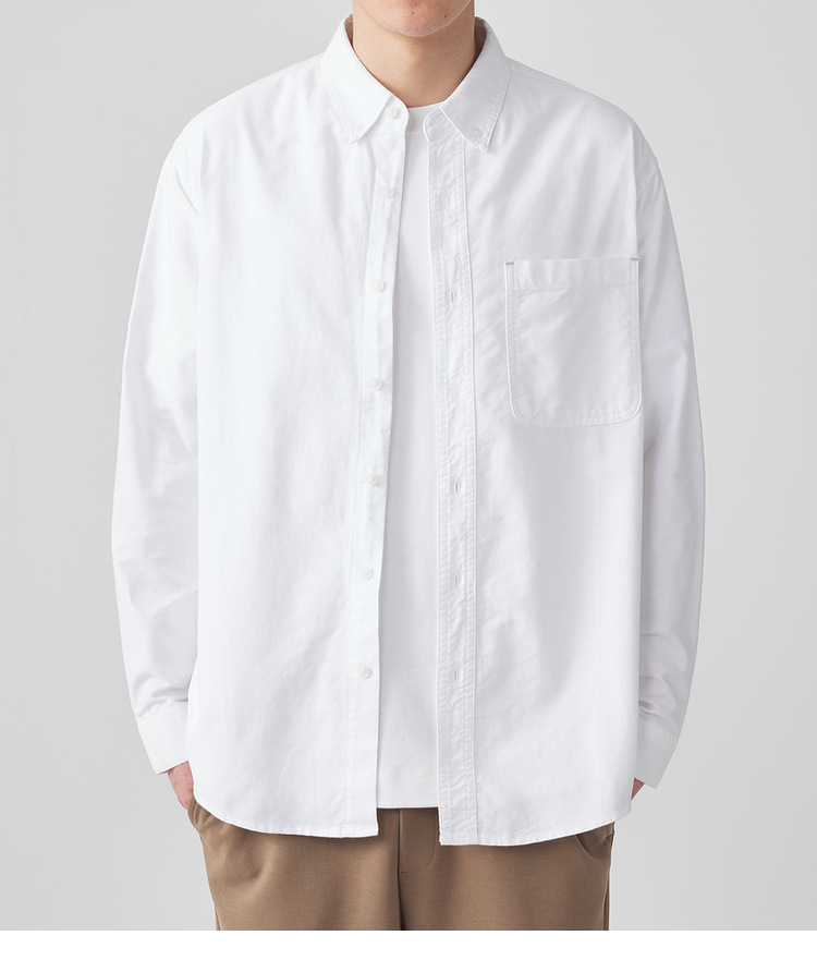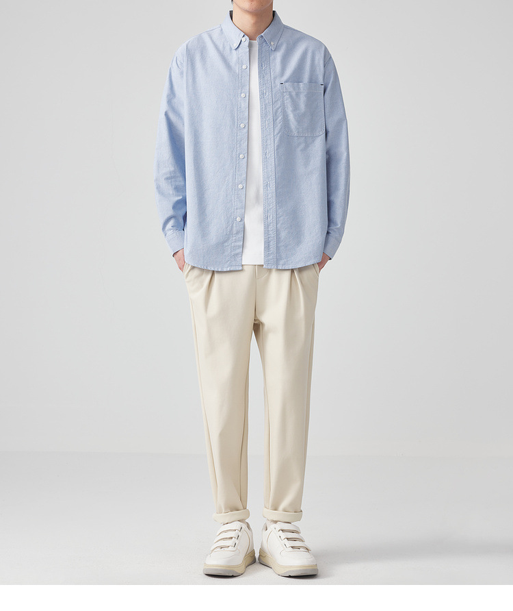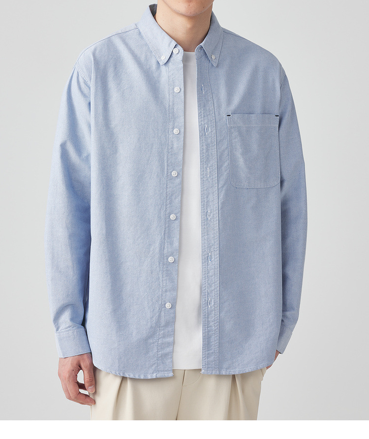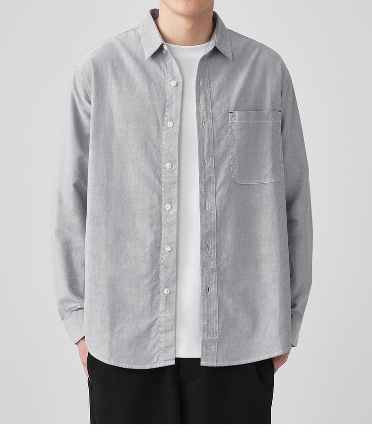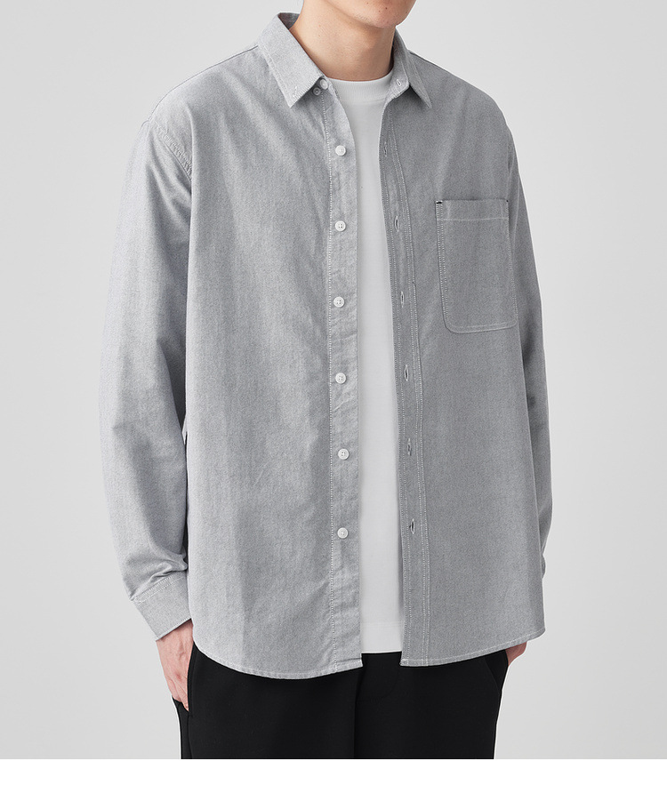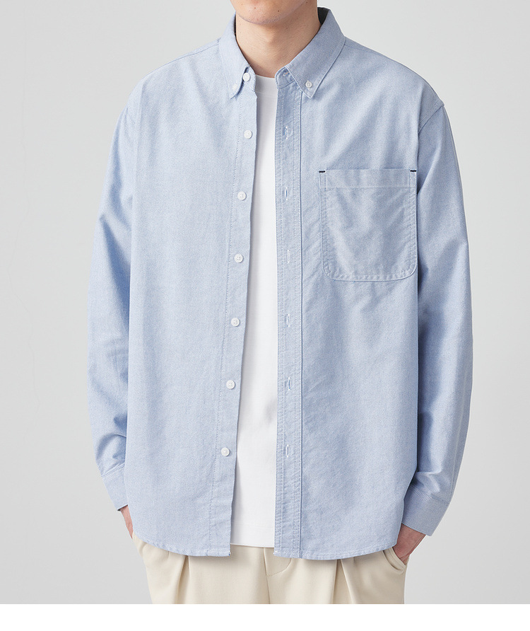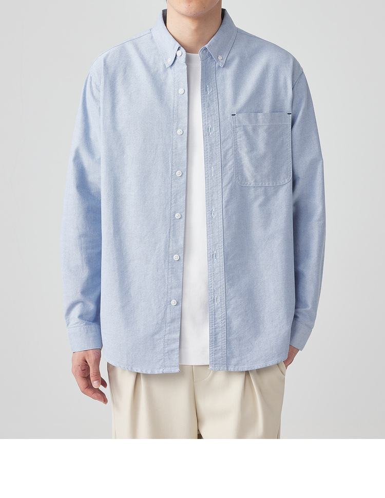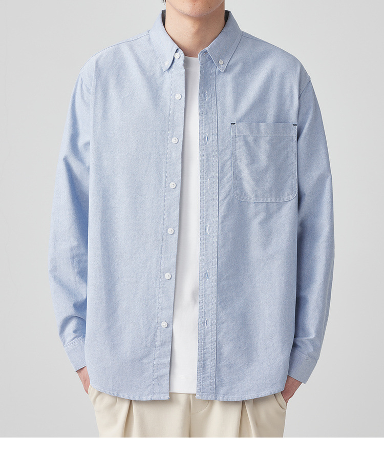 Momaike 코튼 옥스포드 긴팔 셔츠 남성 2025 가을 신상 심플 솔리드 컬러 남성 셔츠 50148.스토어 가기
