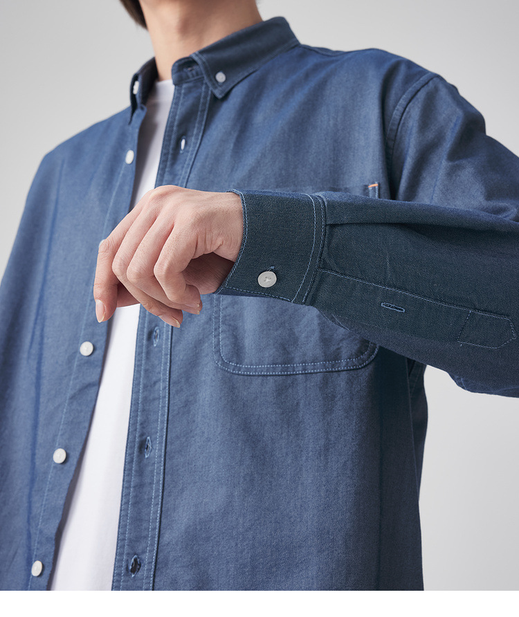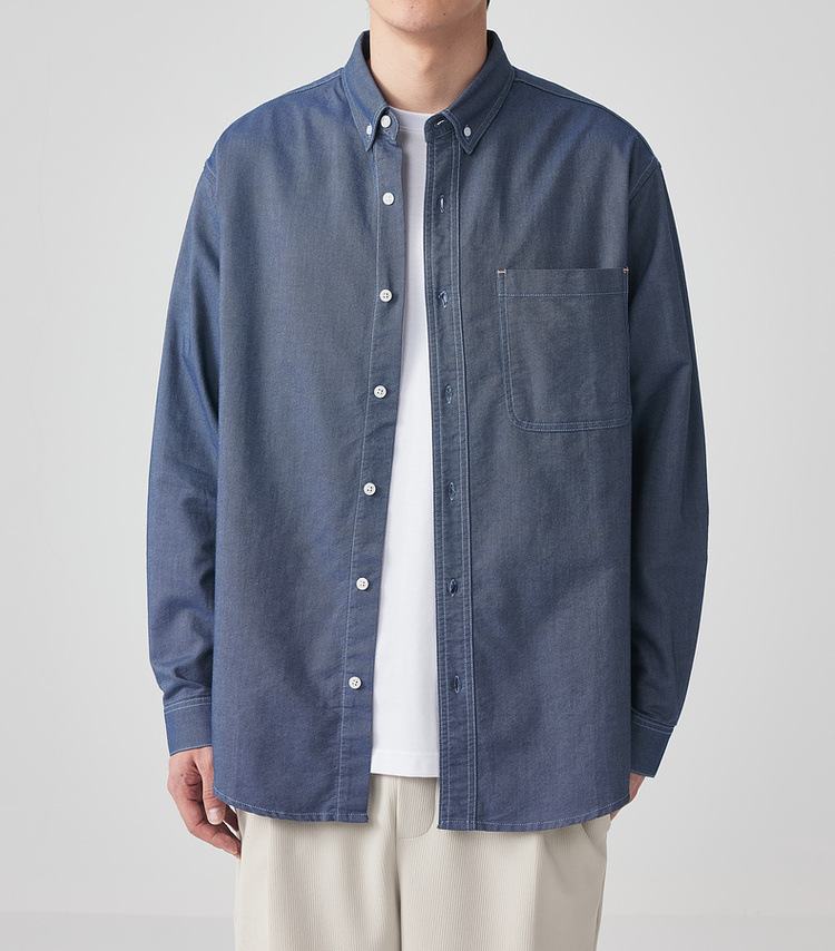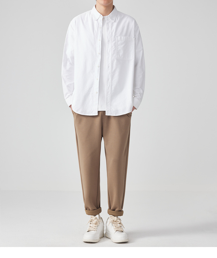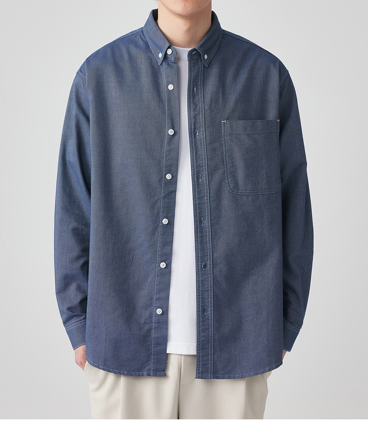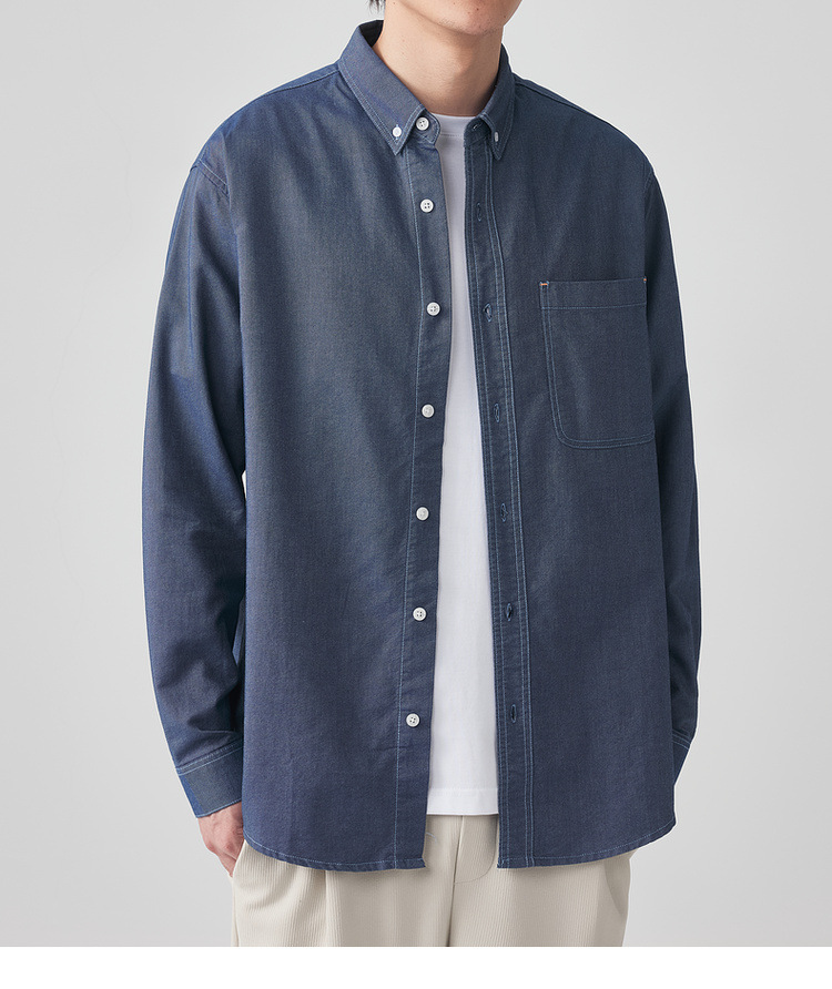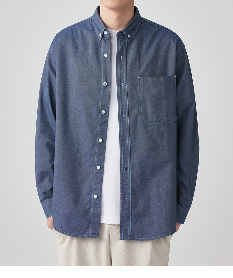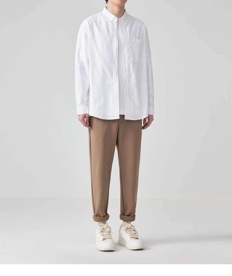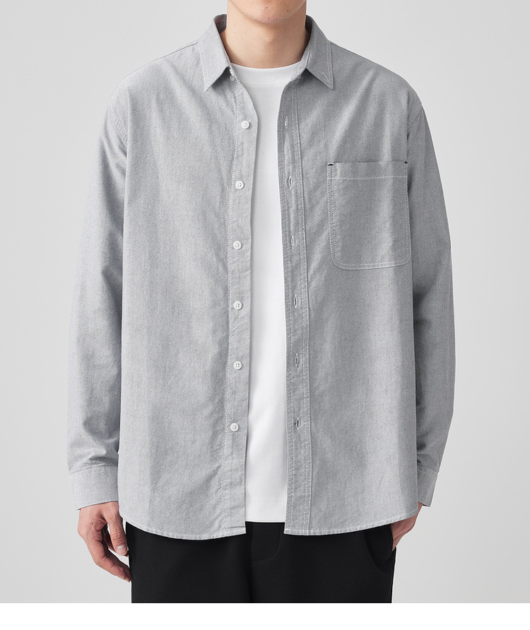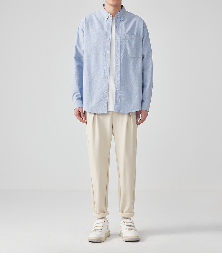 Momaike 코튼 옥스포드 긴팔 셔츠 남성 2025 가을 신상 심플 솔리드 컬러 남성 셔츠 50148.스토어 가기