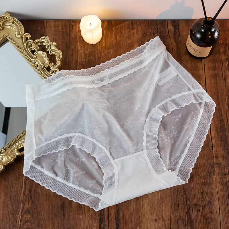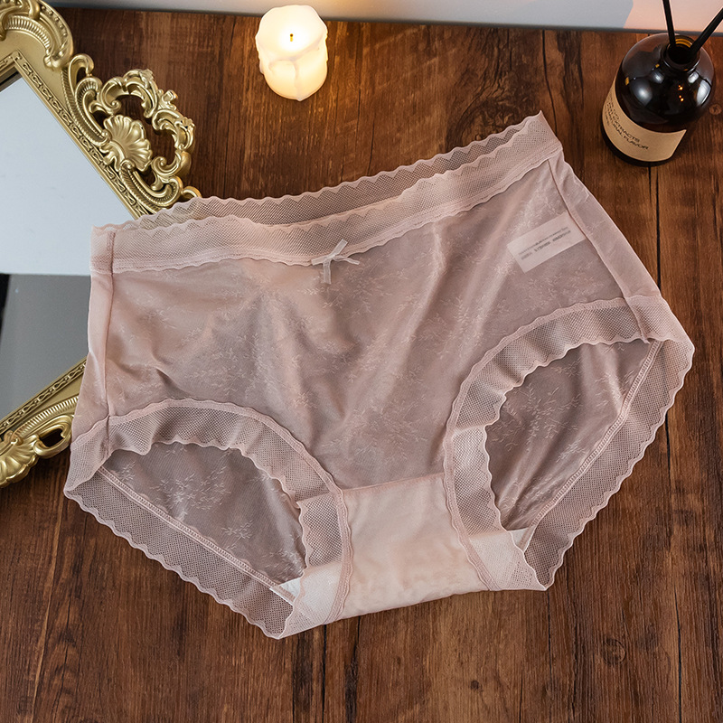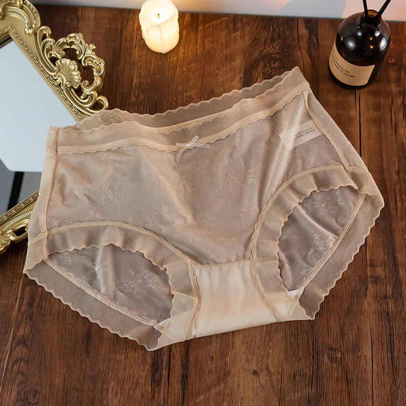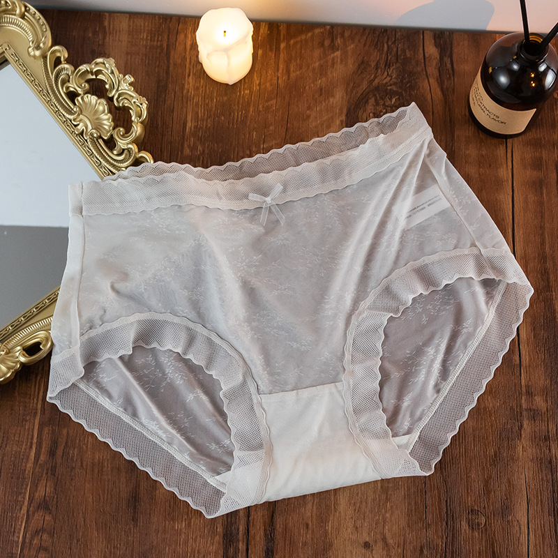 속옷 여성의 원활한 여름 얇은 여성용 통기성 레이스 미드 웨이스트 울트라 씬 아이스 실크 반바지 항균 순면 가랑이 소녀스토어 가기