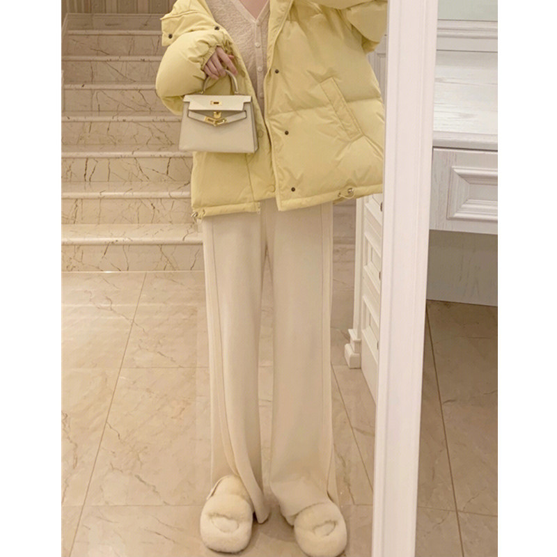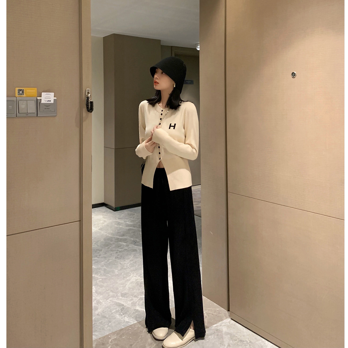 슬리밍 캐주얼 오픈 포크 와이드 레그 팬츠 여성용 가을과 겨울 새로운 하이 웨이스트 느슨한 바닥 드래그 스트레이트 튜브 드레이핑 니트 롱 팬츠스토어 가기