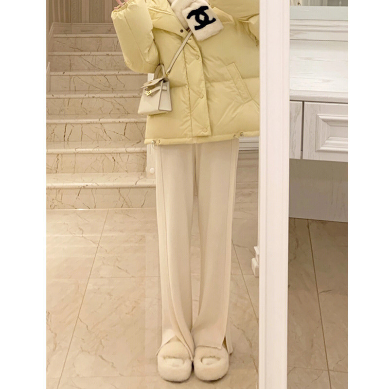 슬리밍 캐주얼 오픈 포크 와이드 레그 팬츠 여성용 가을과 겨울 새로운 하이 웨이스트 느슨한 바닥 드래그 스트레이트 튜브 드레이핑 니트 롱 팬츠