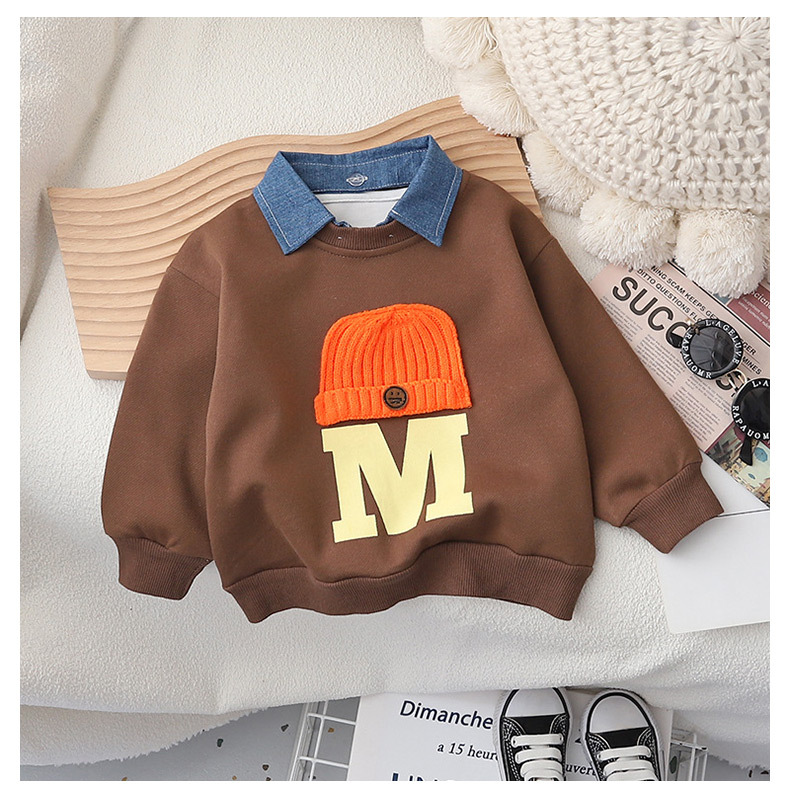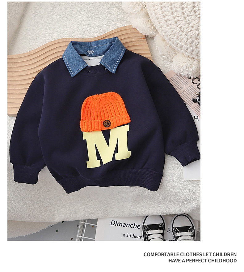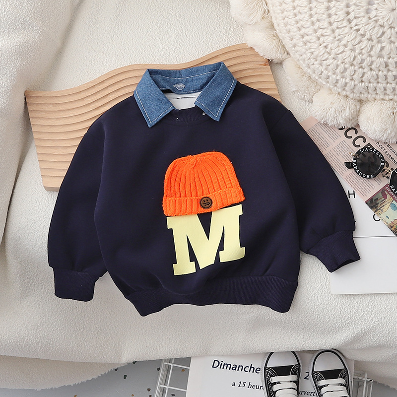 2023 봄과 가을 새로운 어린이 패션 풀오버 라운드 넥 미드 빅 어린이 웨스턴 스타일 울 모자 어린이 스웨터 남성용스토어 가기