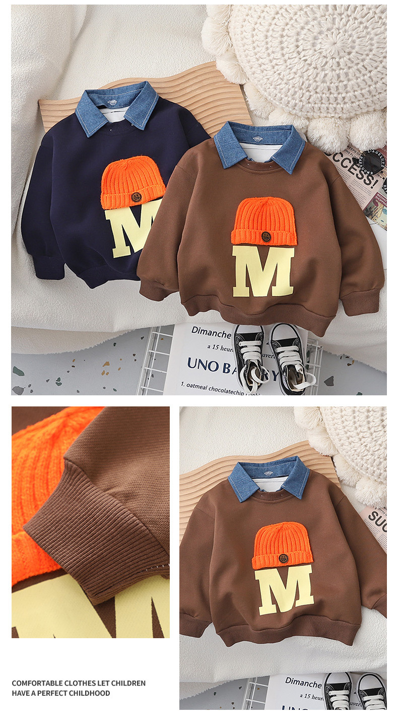 2023 봄과 가을 새로운 어린이 패션 풀오버 라운드 넥 미드 빅 어린이 웨스턴 스타일 울 모자 어린이 스웨터 남성용