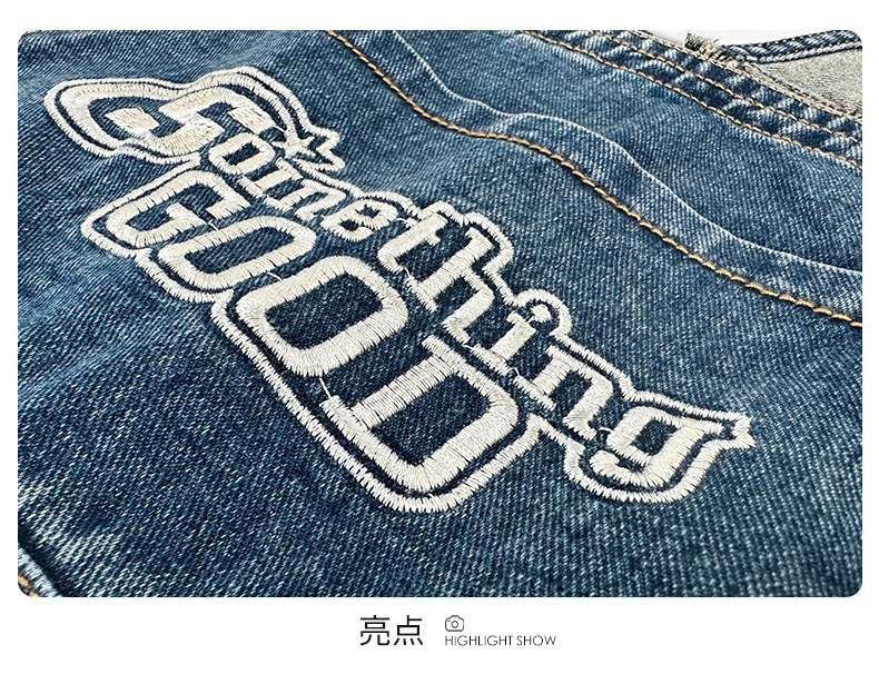 Z1013-조양통2024 봄 신상 중대형 아동용 패셔너블하고 멋진 레터 자수 데님 멜빵바지 남아용