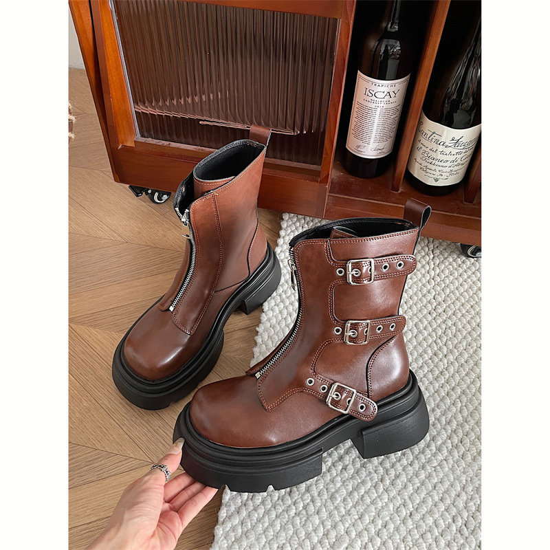 달콤하고 시크한 디자인의 영국풍 브라운 두꺼운 밑창 마틴 부츠 여성용 여름 2024 신상 얇은 웨스턴 카우보이 숏부츠스토어 가기