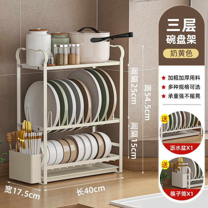 간단한 주방 접시 보관함 스테인레스 스틸 다층 탄소강 배수구 선반 접시 보관함 캐비닛 보관함스토어 가기