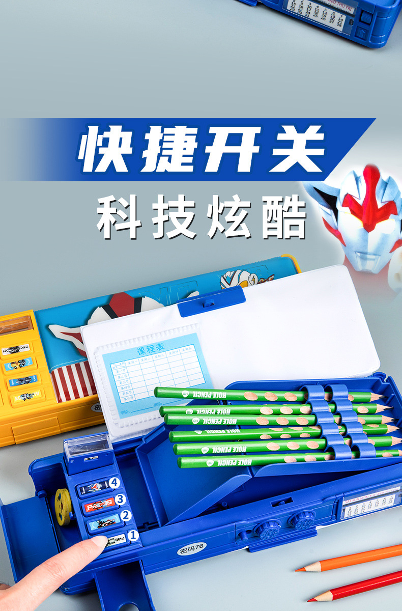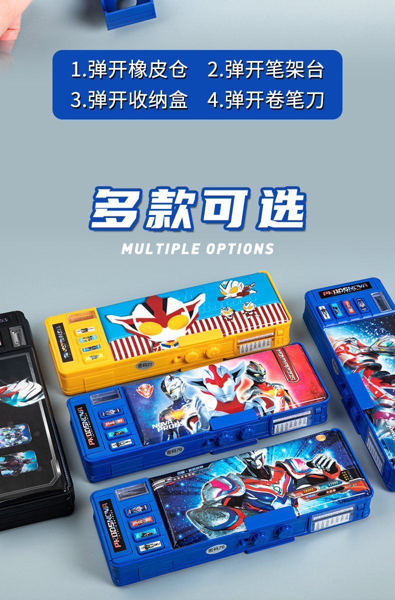 초등 학생을위한 도매 다기능 필통 대용량 소년 스타일 장기 암호 잠금 필통 울트라맨 필통