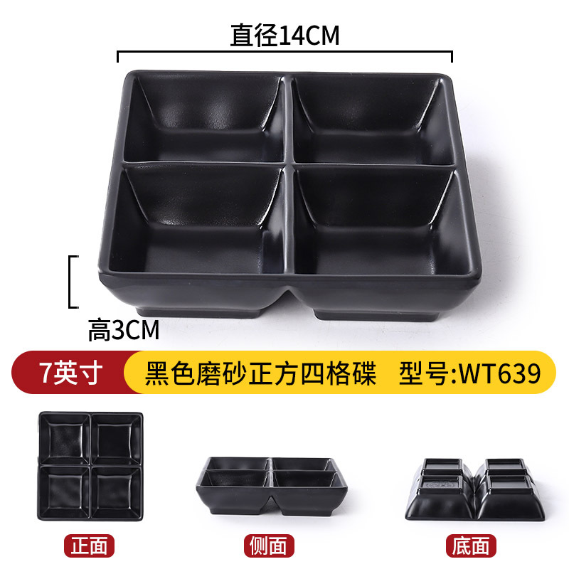 • 7 인치 블랙 매트 스퀘어 4 컴 파트먼트 디스크 WT639