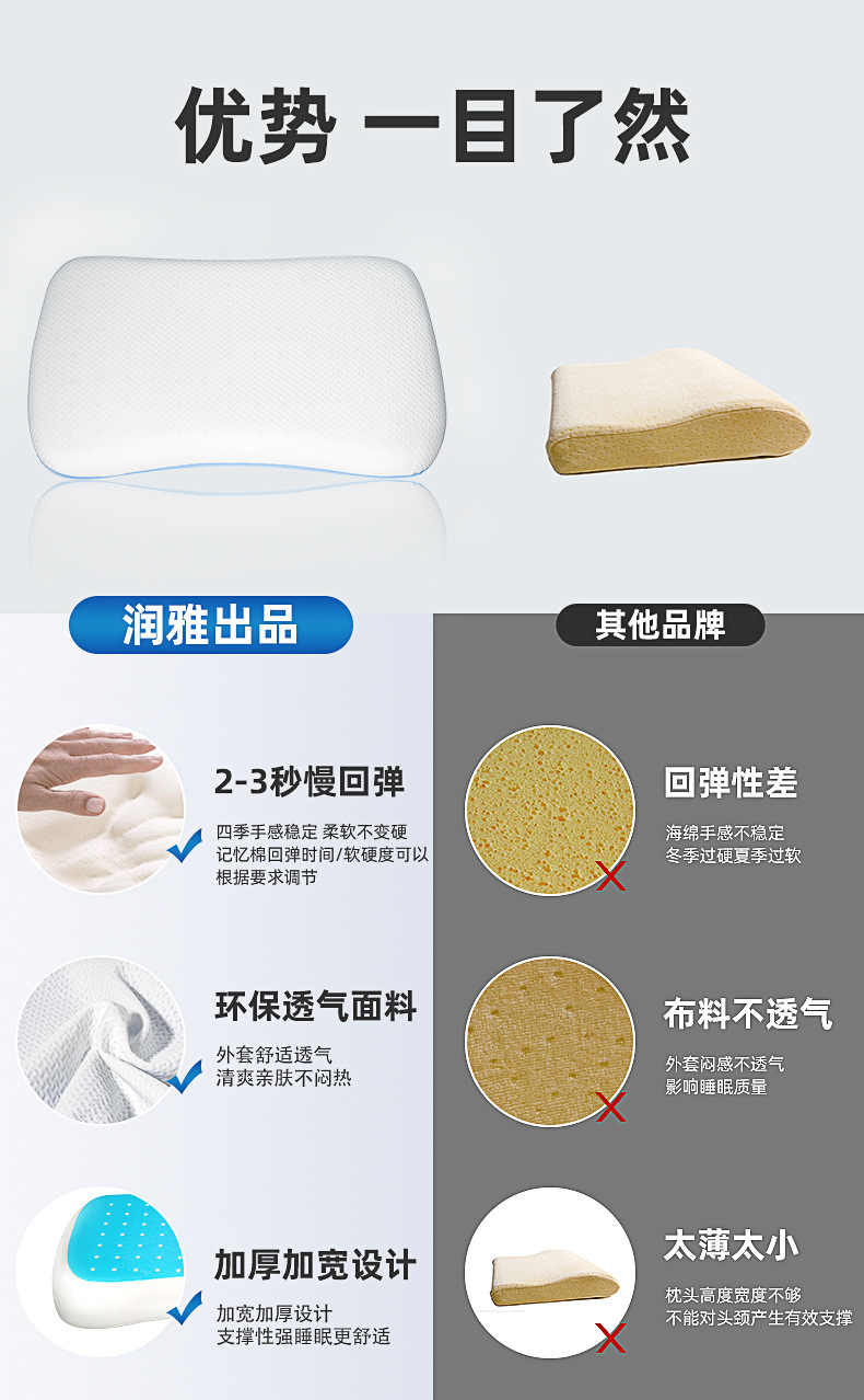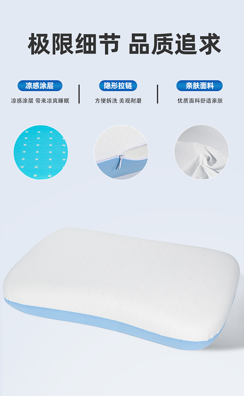 국경을 넘어 인기 있는 메모리폼 베개, 시원한 PCM 코팅 베개심, 메모리폼 슬로우 리바운드 경추보호 베개, 엎드려 자는 베개스토어 가기