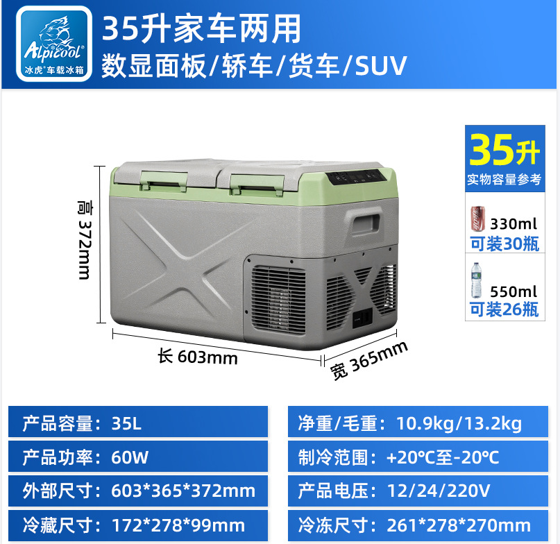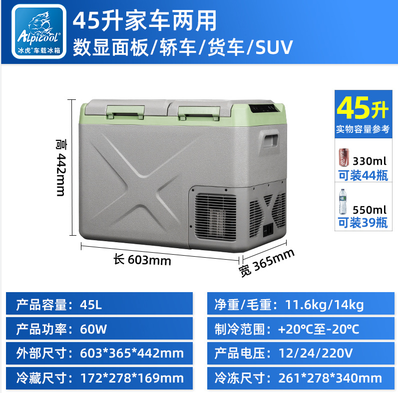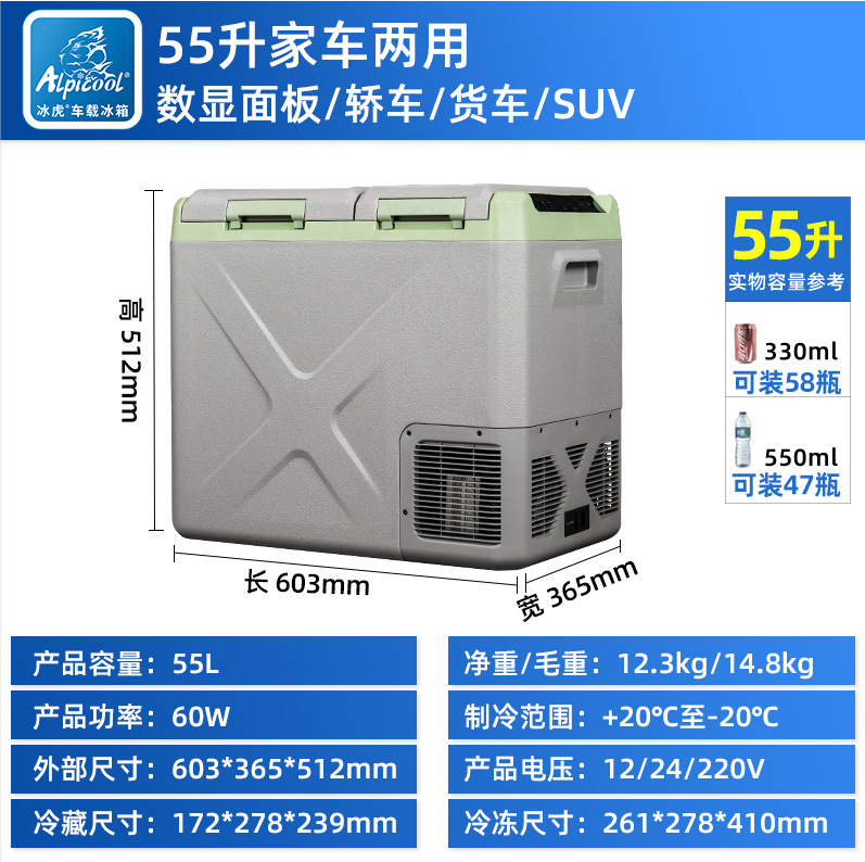 아이스 타이거 35-55L 소형 냉장고 컴프레서 냉장 12/24v 이중 목적 냉장 트럭 미니 자동차 냉장고