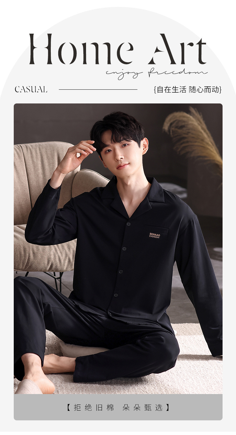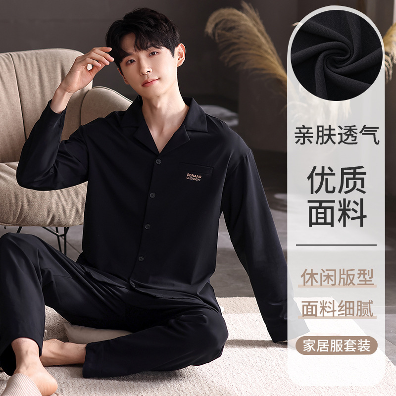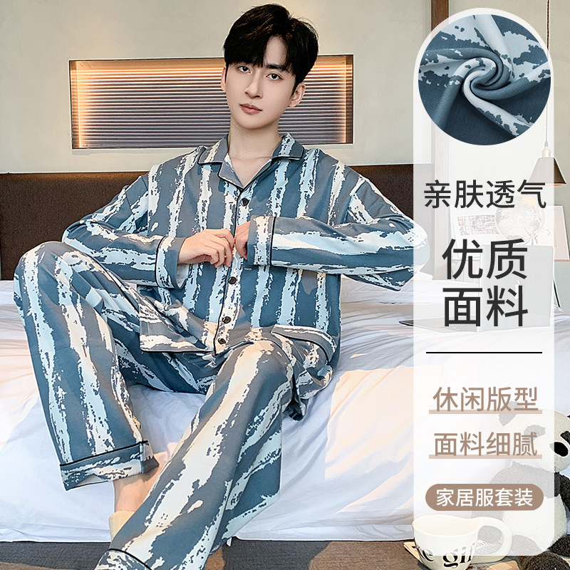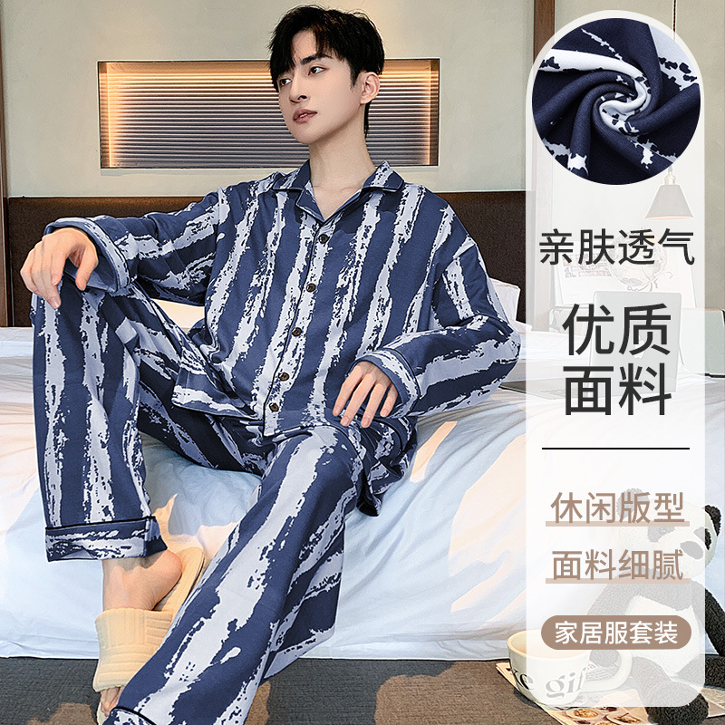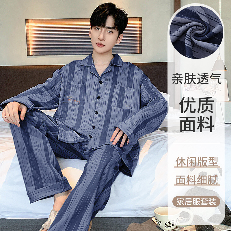 2024 봄 새 파자마 긴 소매 스트라이프 캐주얼 홈 웨어 세트 겉옷 남성 캐주얼 바지 만화스토어 가기