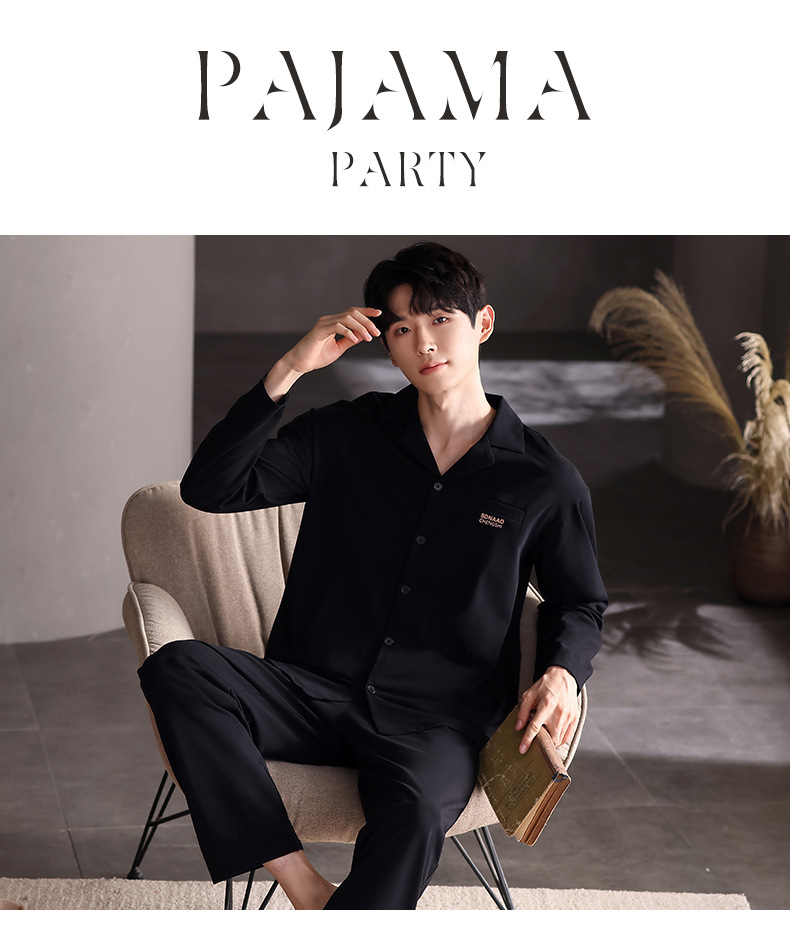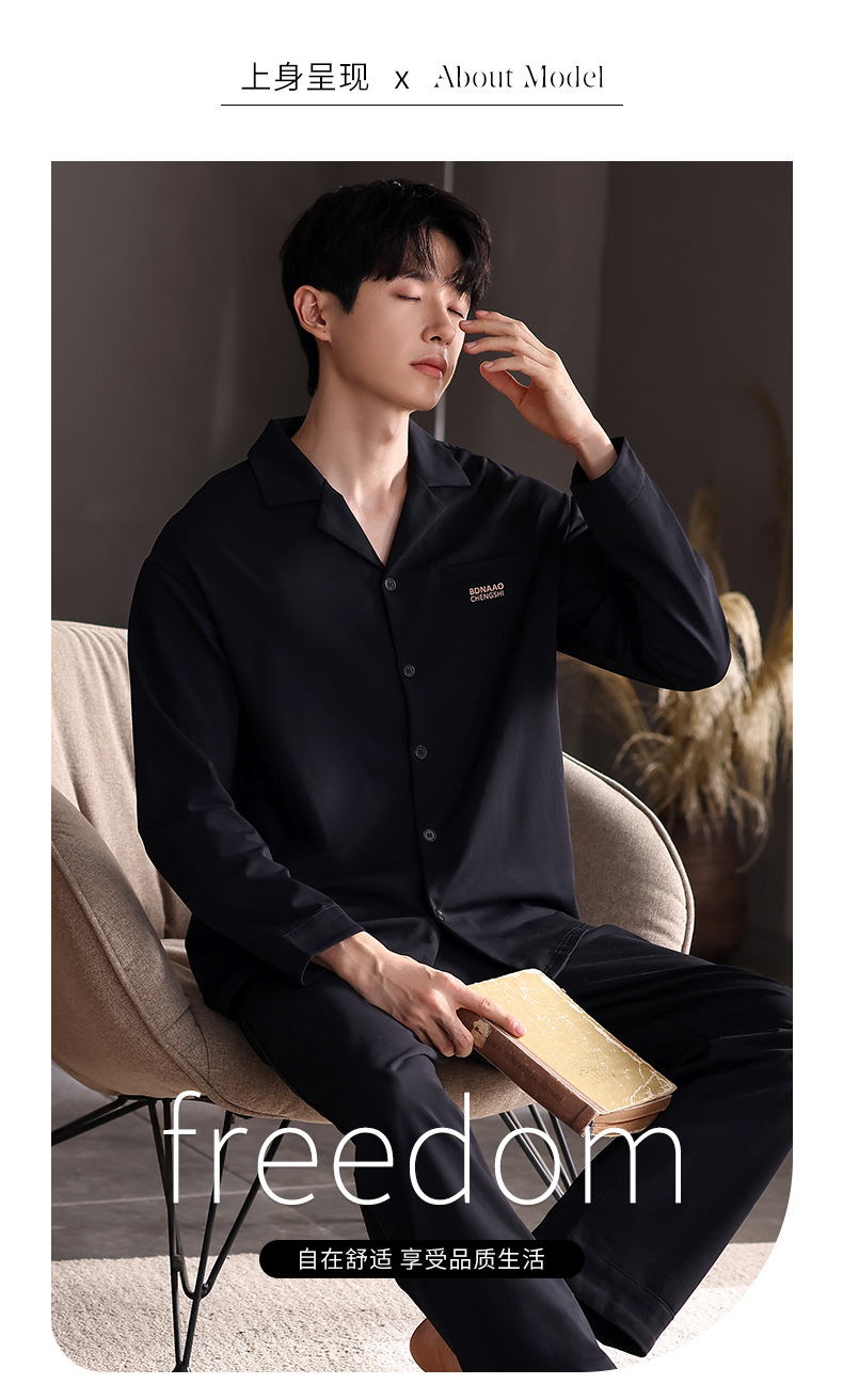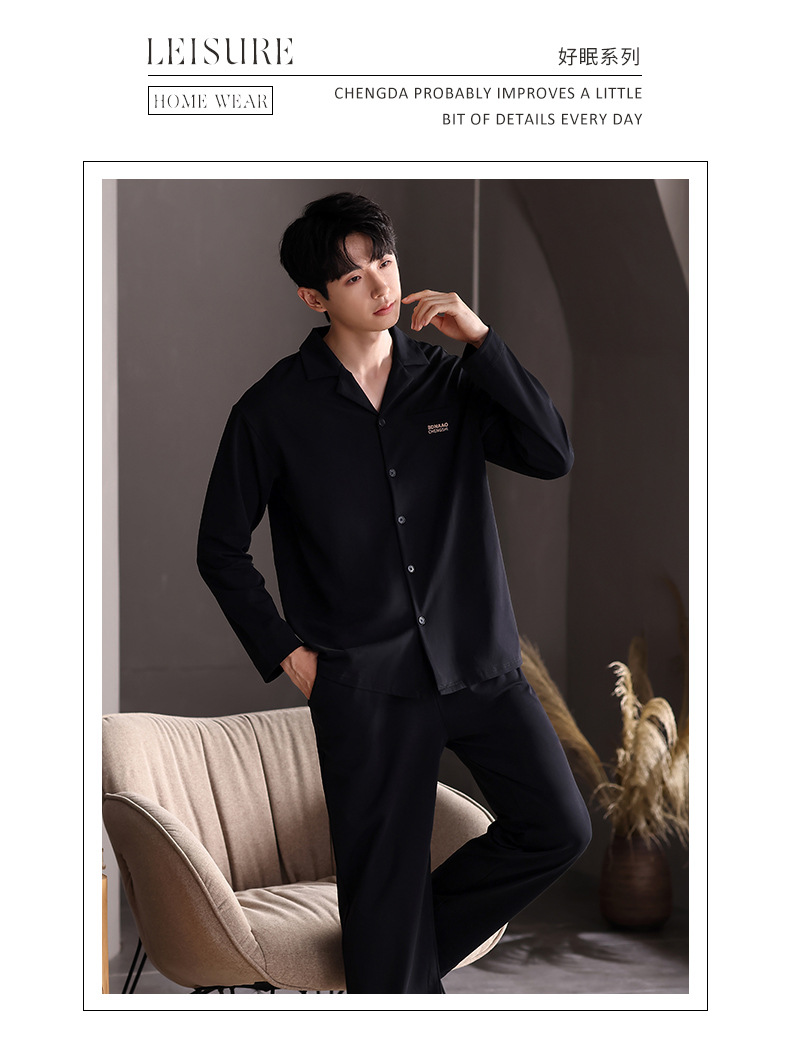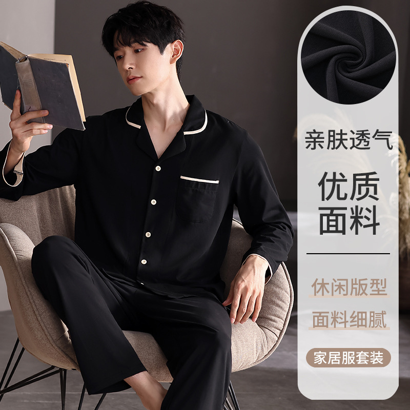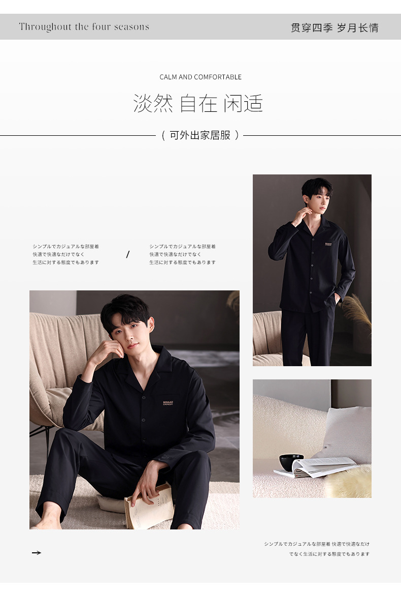 2024 봄 새 파자마 긴 소매 스트라이프 캐주얼 홈 웨어 세트 겉옷 남성 캐주얼 바지 만화스토어 가기