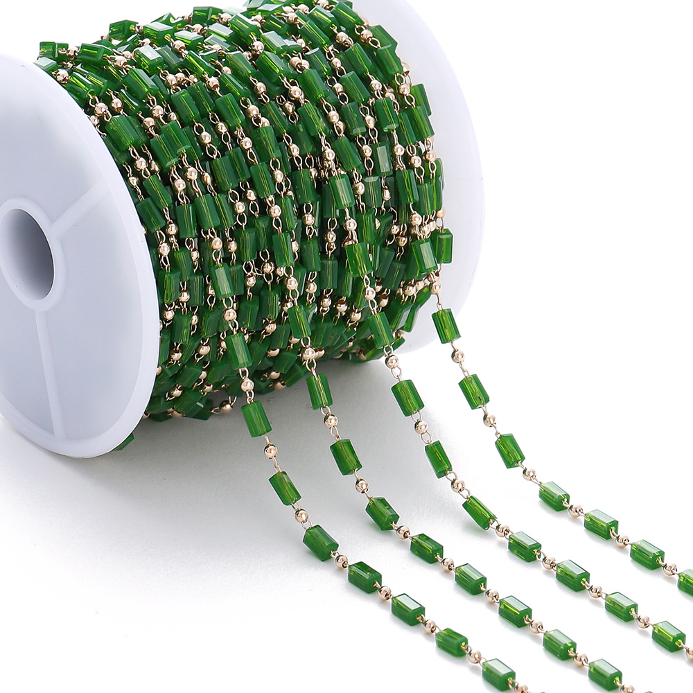 • 녹색 도자기 스트립 + 모조 골드 체인
