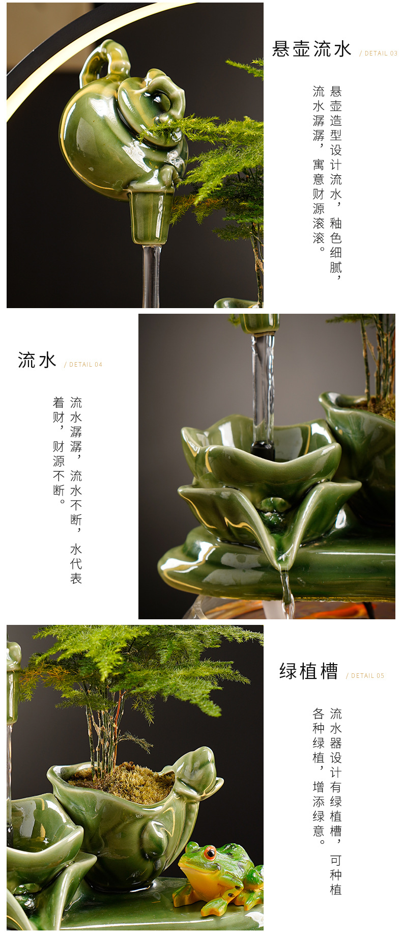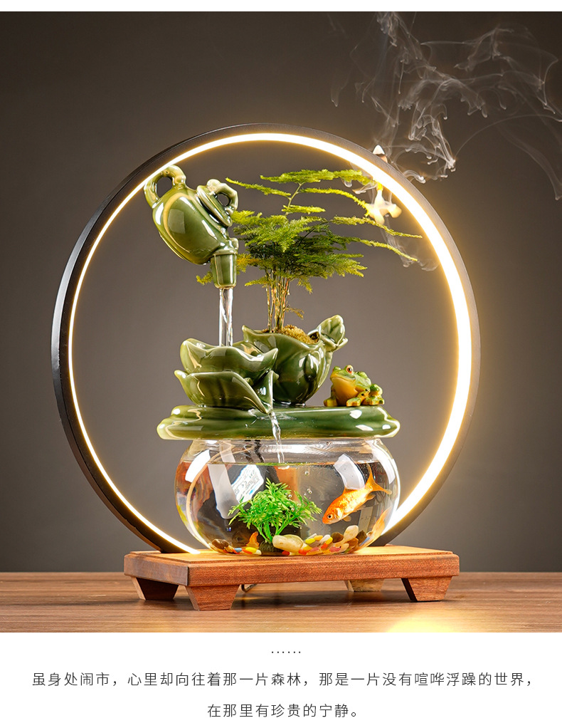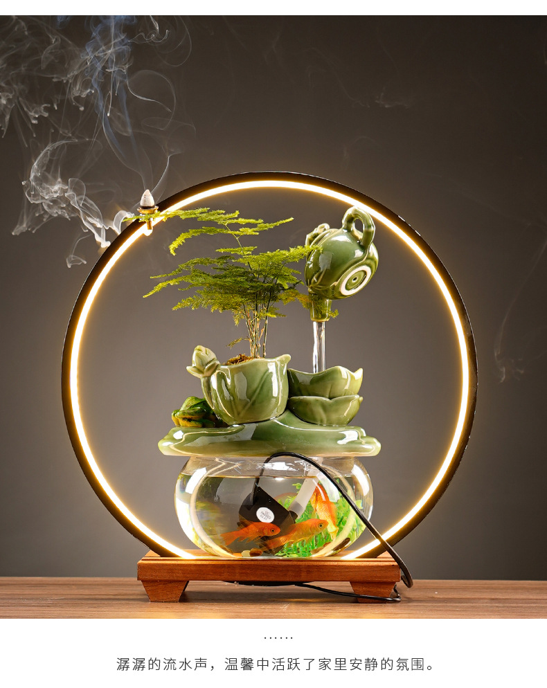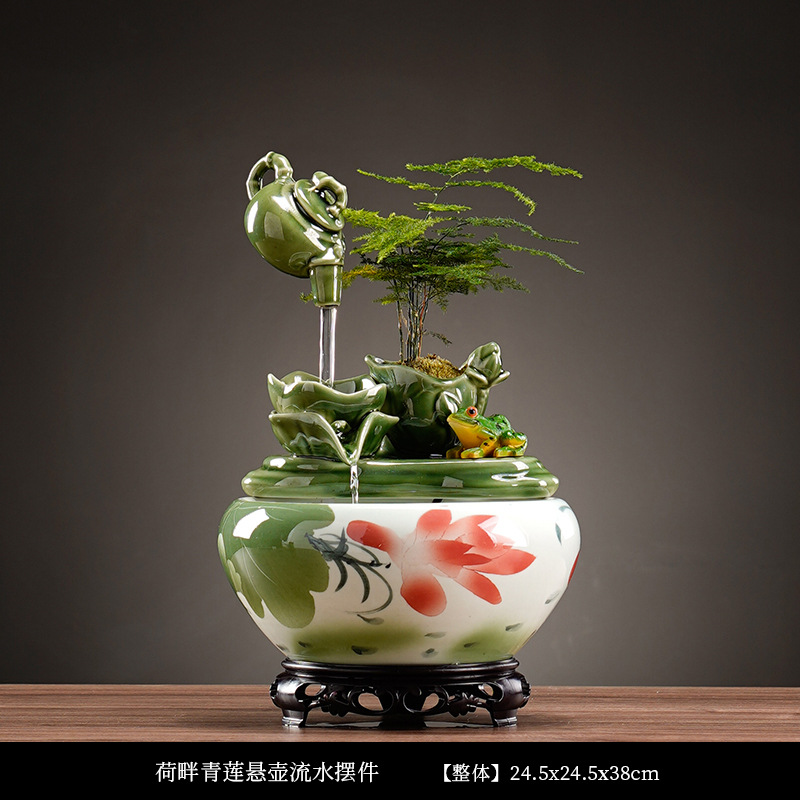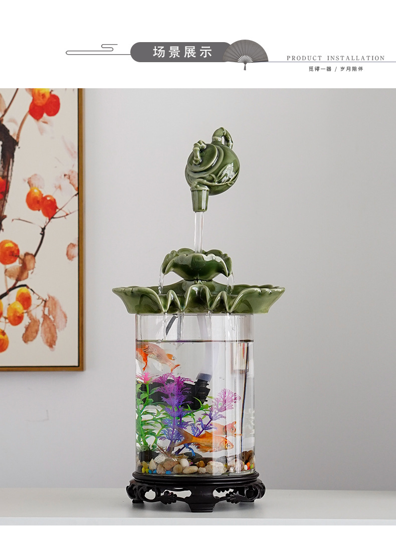 청자 연꽃 순환 물 장식품 돈을 버는 세라믹 거실 분수 가습 어항 물고기 오프닝 선물