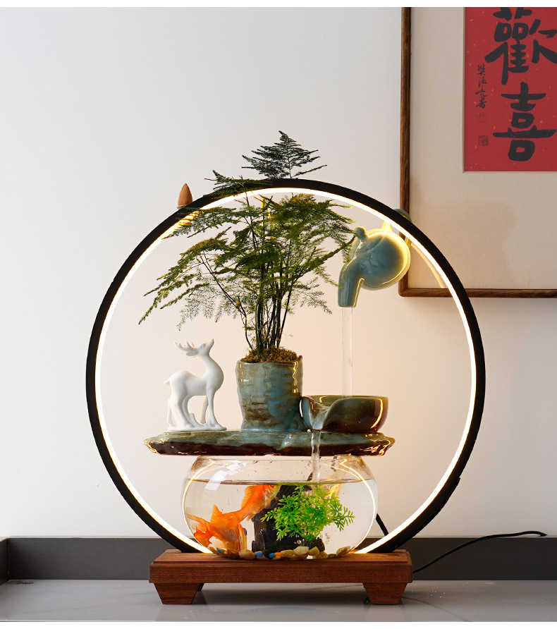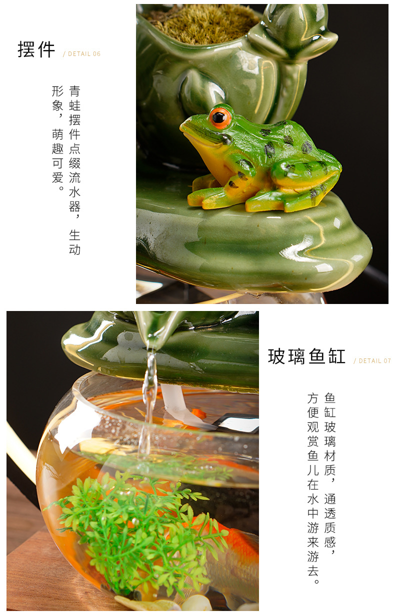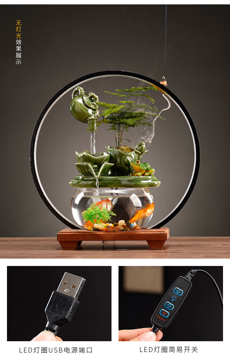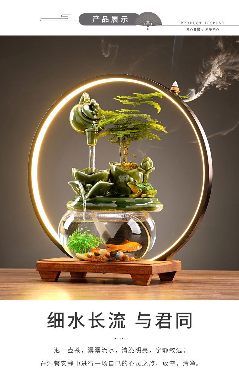 청자 연꽃 순환 물 장식품 돈을 버는 세라믹 거실 분수 가습 어항 물고기 오프닝 선물