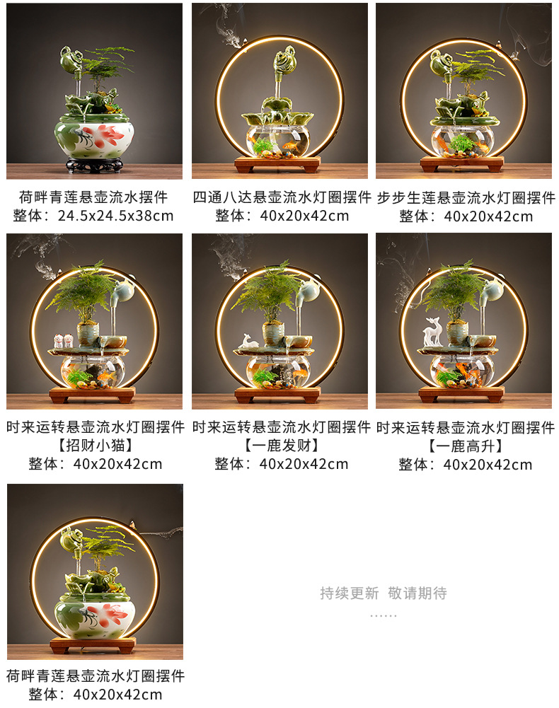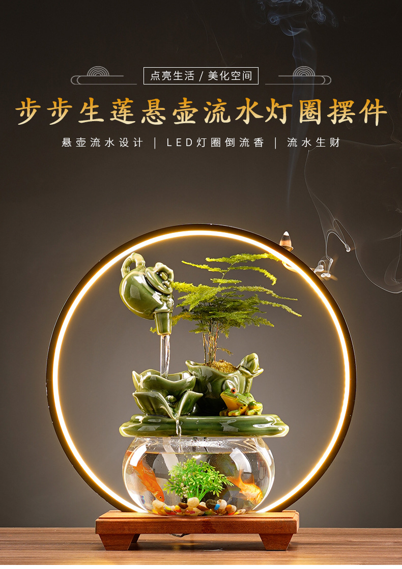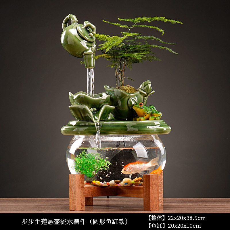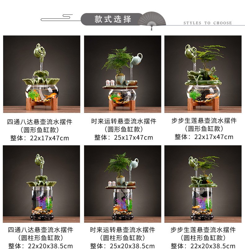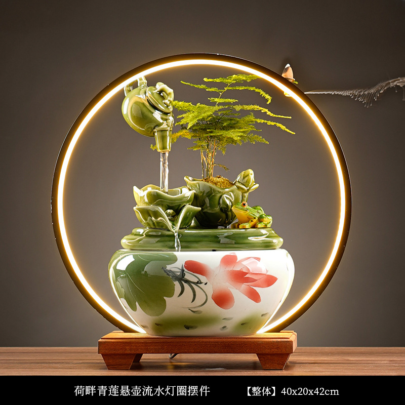 청자 연꽃 순환 물 장식품 돈을 버는 세라믹 거실 분수 가습 어항 물고기 오프닝 선물스토어 가기