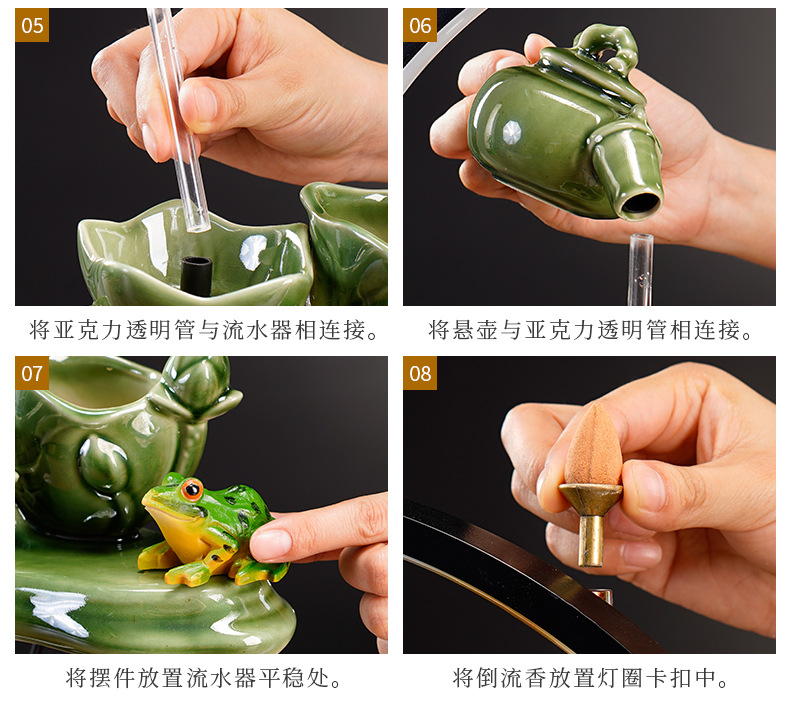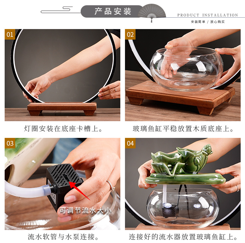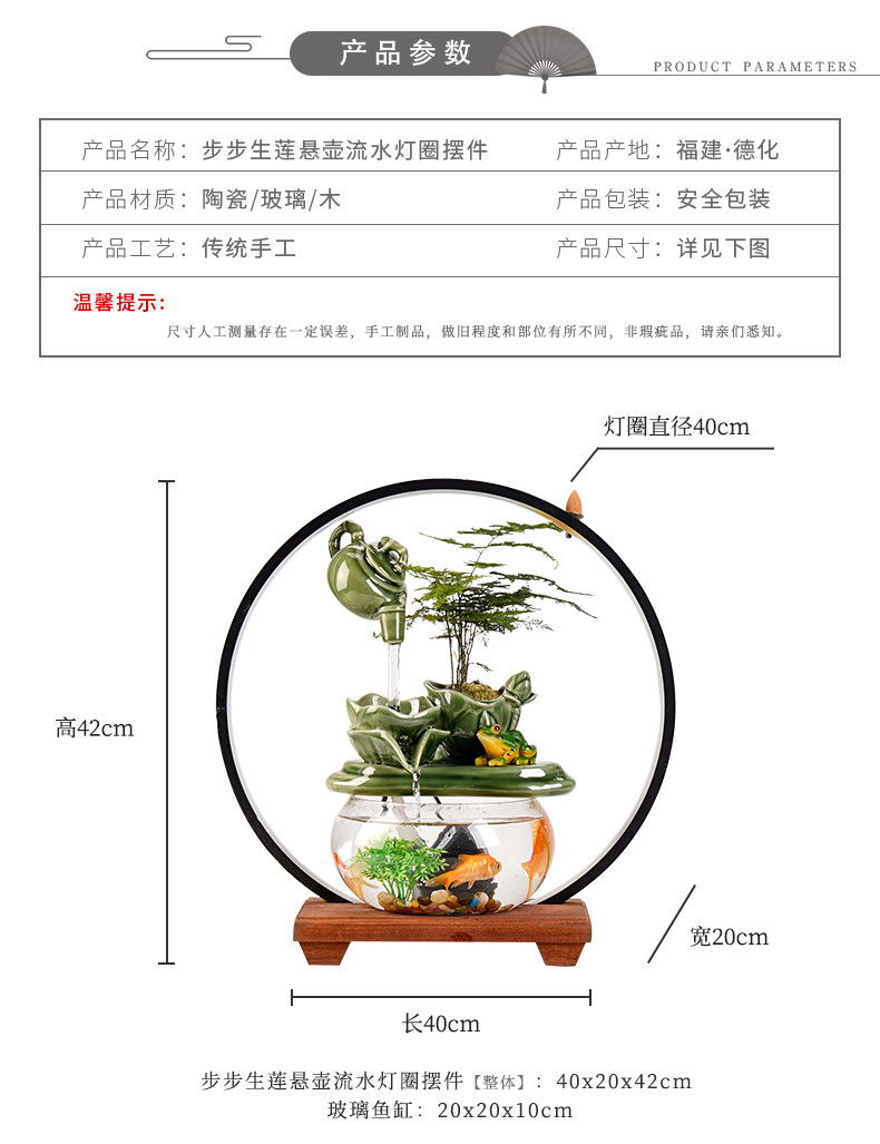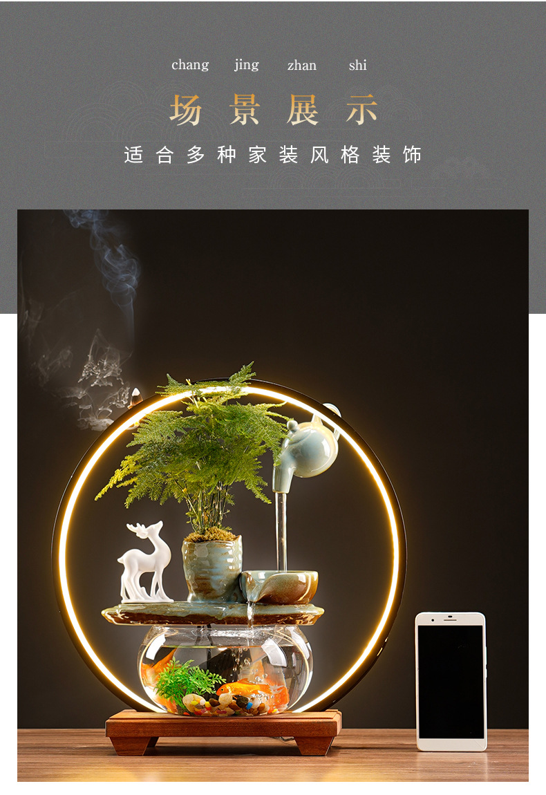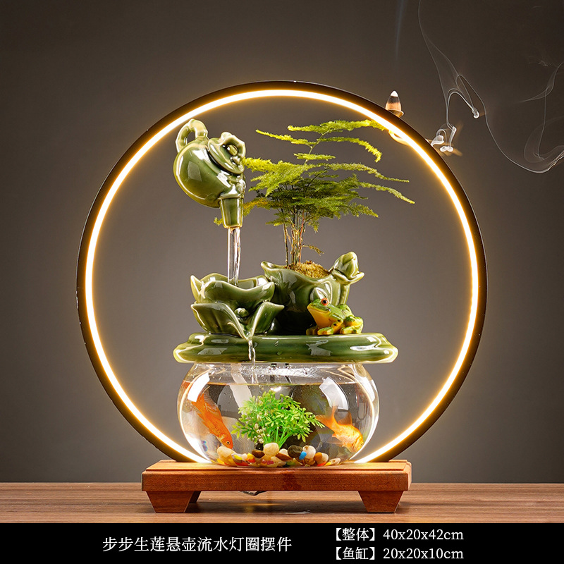청자 연꽃 순환 물 장식품 돈을 버는 세라믹 거실 분수 가습 어항 물고기 오프닝 선물스토어 가기