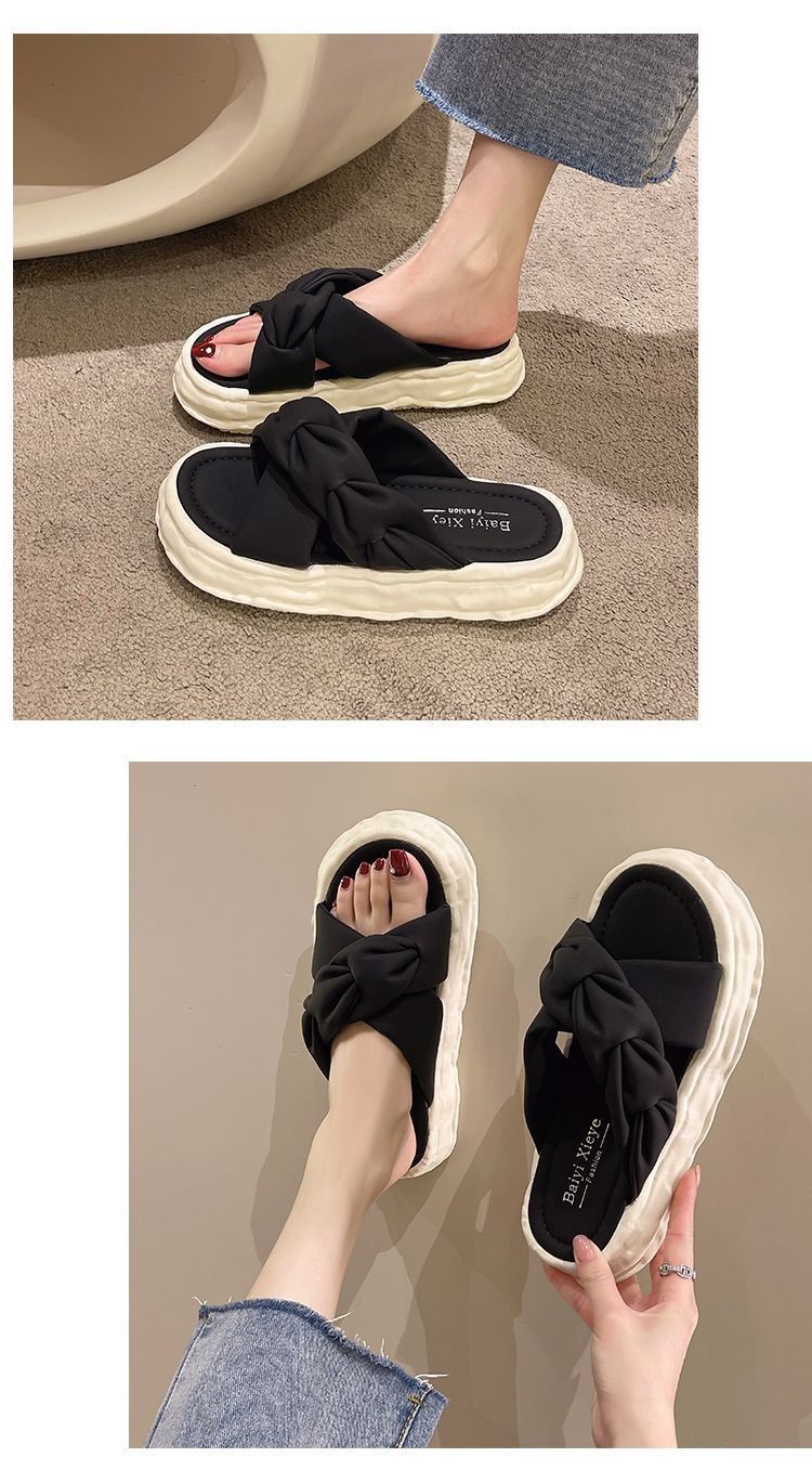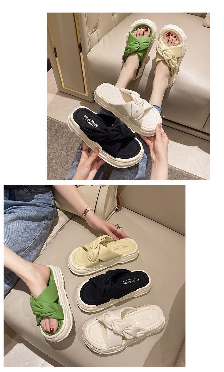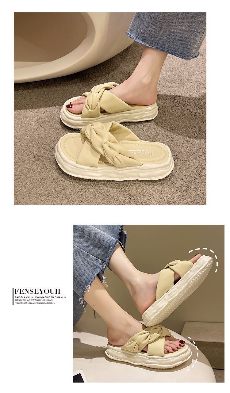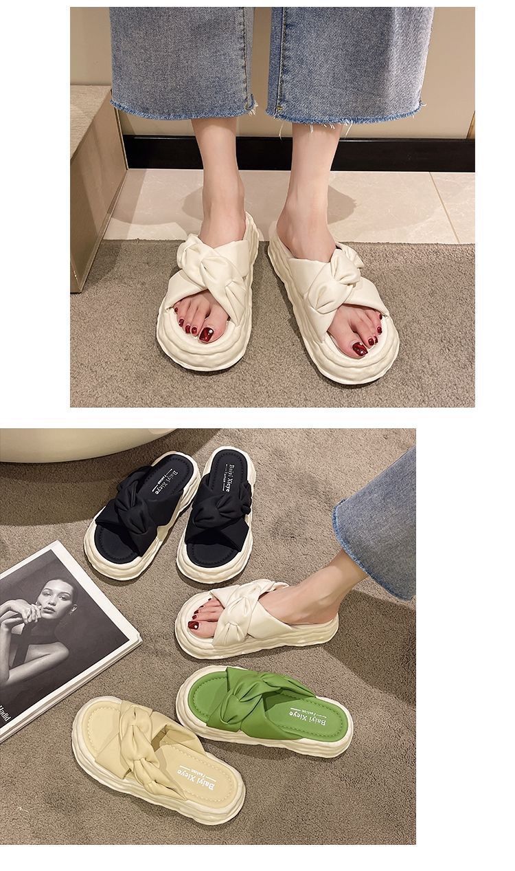 페어리 스타일 슬리퍼 여성용 여름 패션 미끄럼 방지 가정용 두꺼운 바닥 달콤한 고급 비치 샌들 및 슬리퍼
