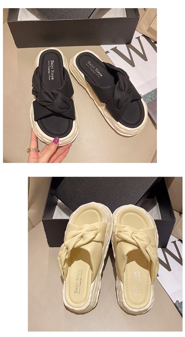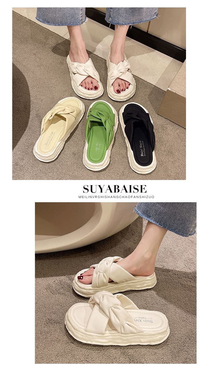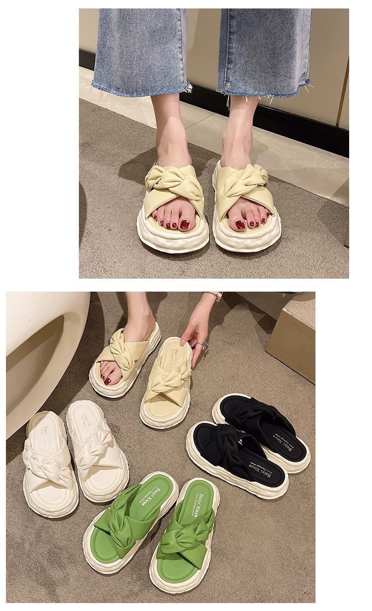 페어리 스타일 슬리퍼 여성용 여름 패션 미끄럼 방지 가정용 두꺼운 바닥 달콤한 고급 비치 샌들 및 슬리퍼