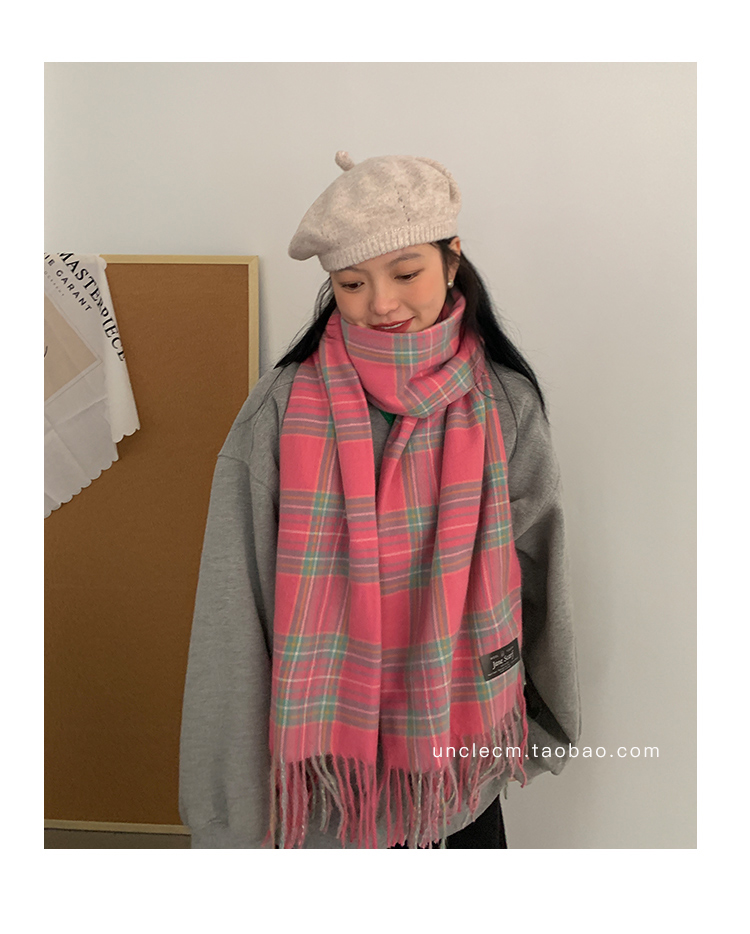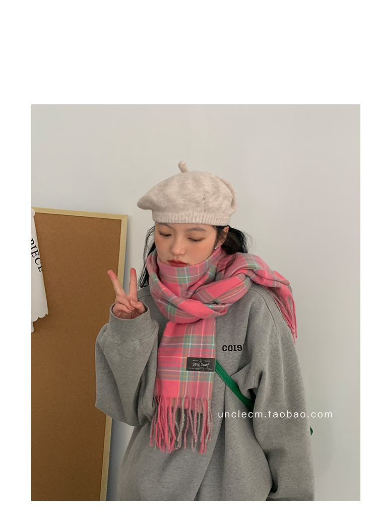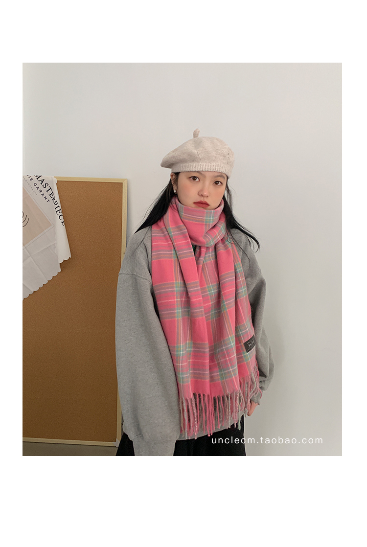 가을과 겨울 새로운 캐시미어 격자 무늬 스카프 여성의 겨울 한국 스타일 패션 모든 매치 숄 두꺼운 따뜻한 니트 스카프스토어 가기