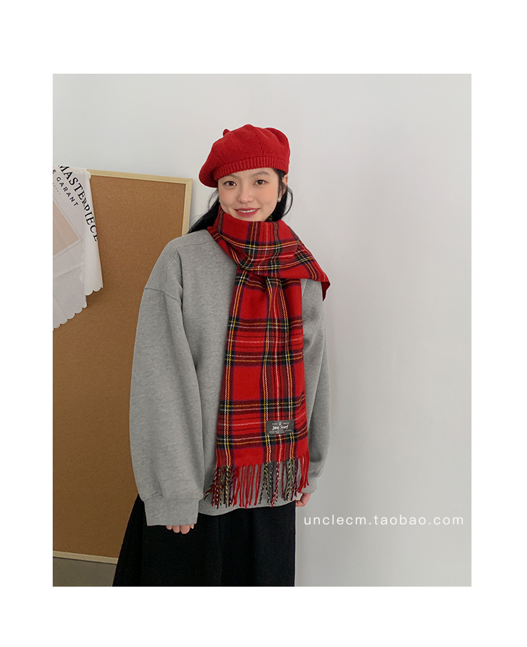 가을과 겨울 새로운 캐시미어 격자 무늬 스카프 여성의 겨울 한국 스타일 패션 모든 매치 숄 두꺼운 따뜻한 니트 스카프