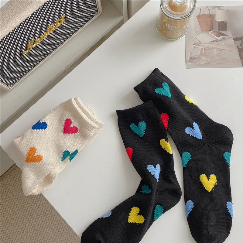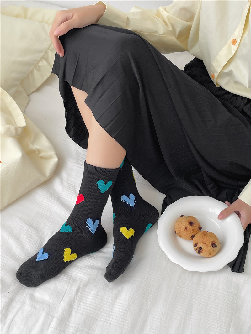 가을 도파민 양말 여자의 다채로운 두꺼운 라인 사랑 통기성 중공 달콤한 중간 튜브 스택 양말 인스 타 그램 유행 유럽스토어 가기