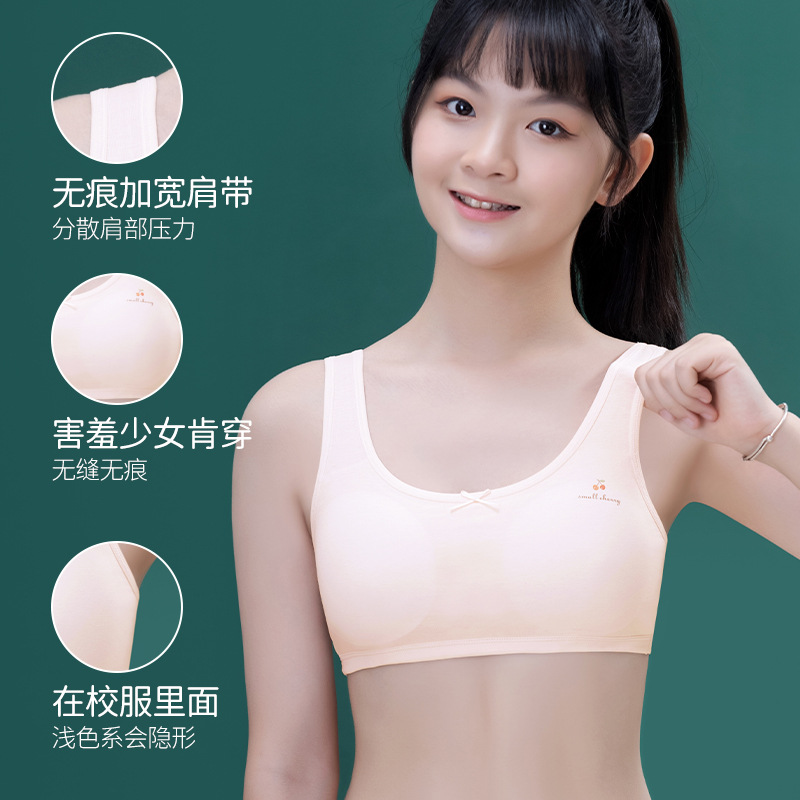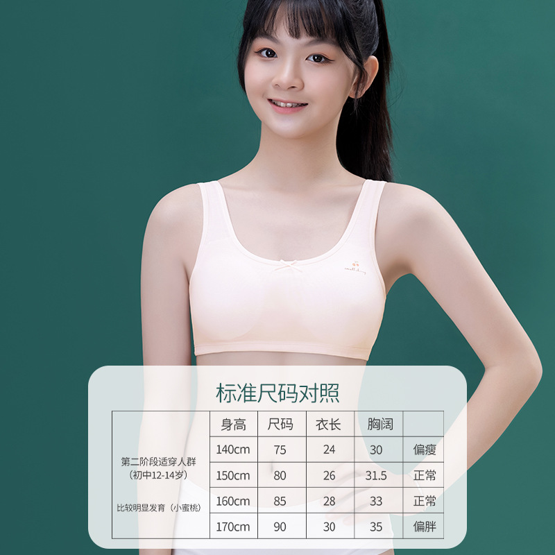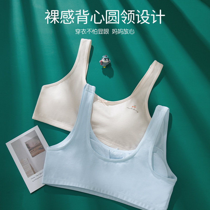 여아 속옷 개발 단계 중학교 학생 초등학생을위한 2 단계 고정 컵 얇은 스포츠 조끼 통기성 조끼스토어 가기