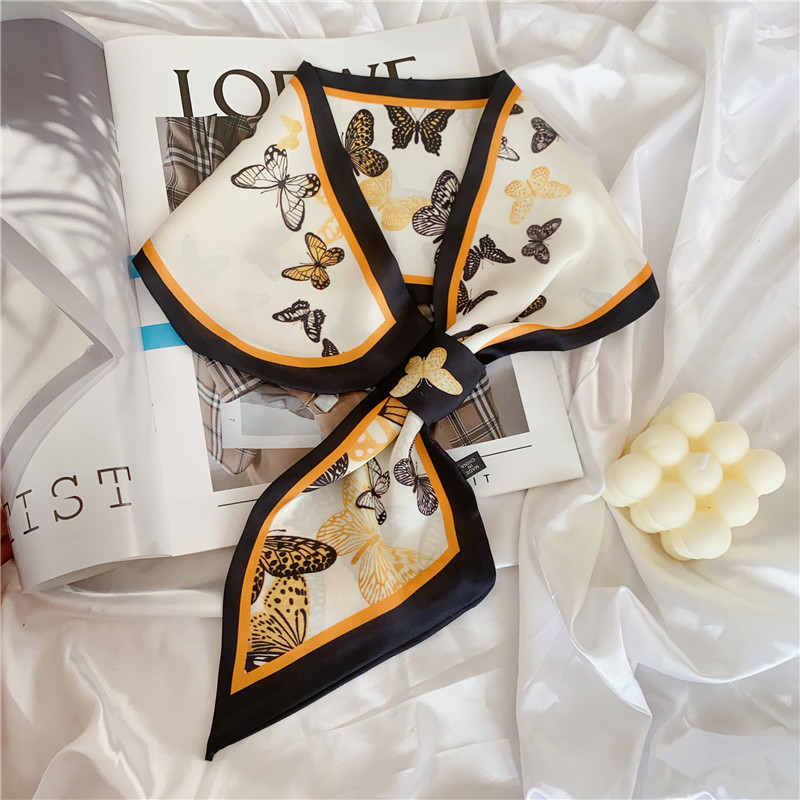 새로운 게으른 롱 스카프 여성용 한국식 헤어 벨트 버클 크로스 작은 스카프 스카프 리본 나비 인쇄 스카프