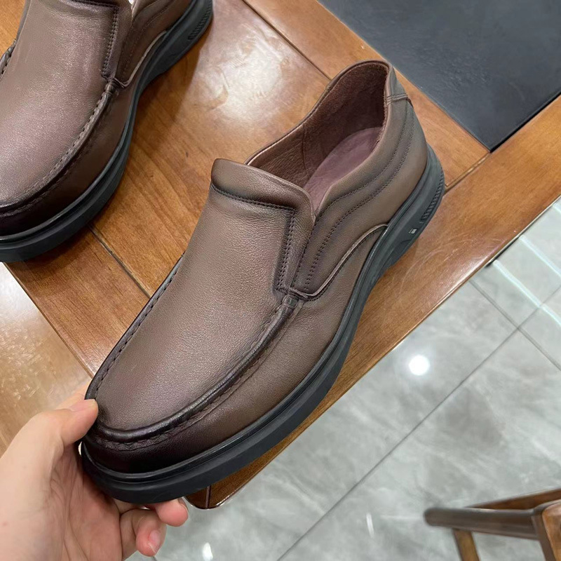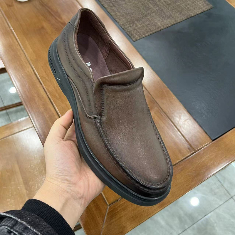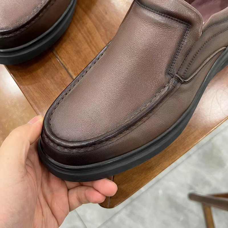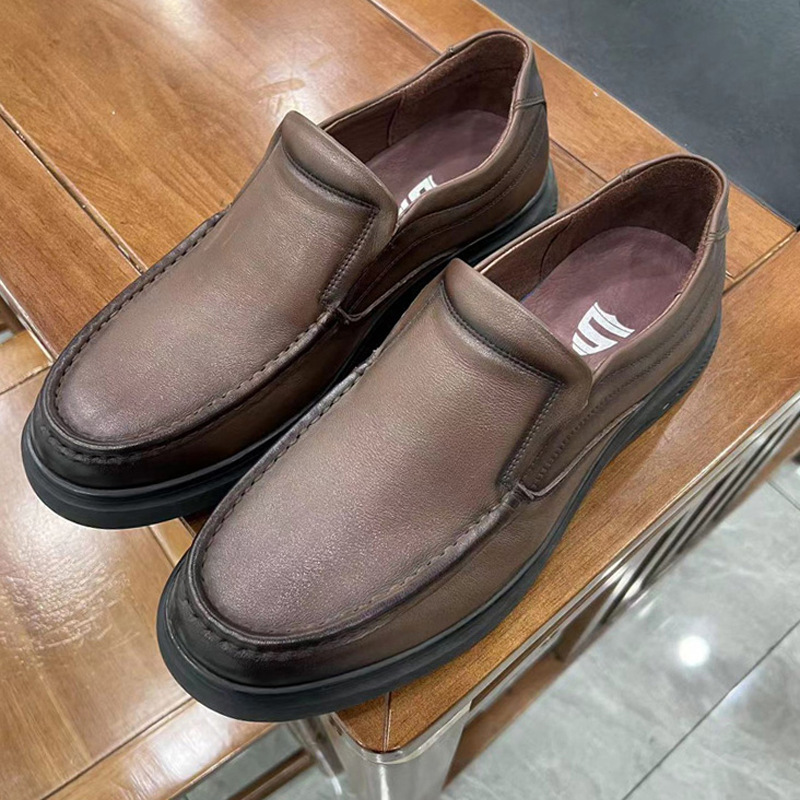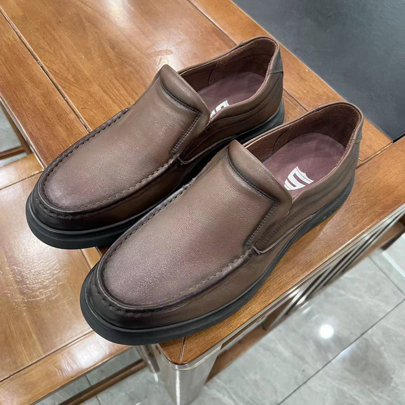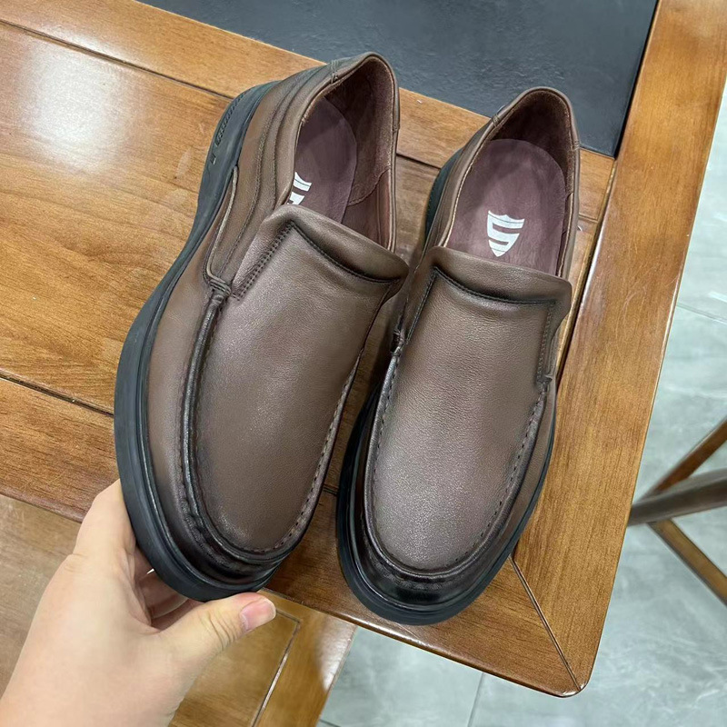1 층 소가죽 신발 남성 정장 착용 원 페달 미끄럼 방지 비즈니스 캐주얼 신발 부드러운 밑창 컬러 광택 가죽 남성 신발 로퍼