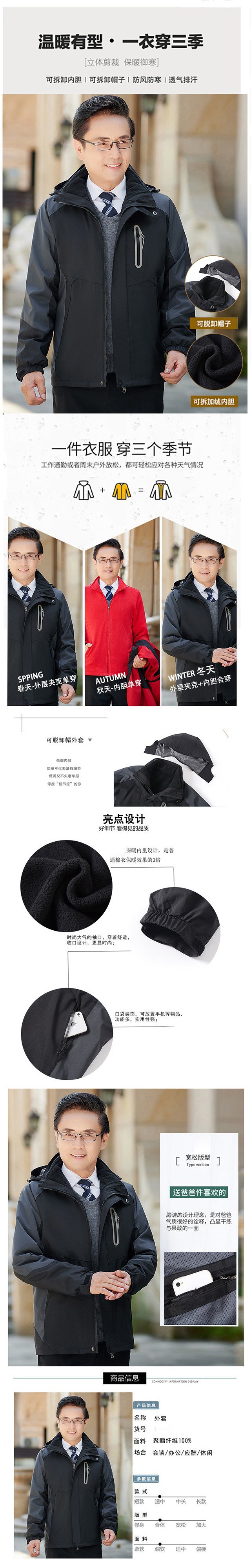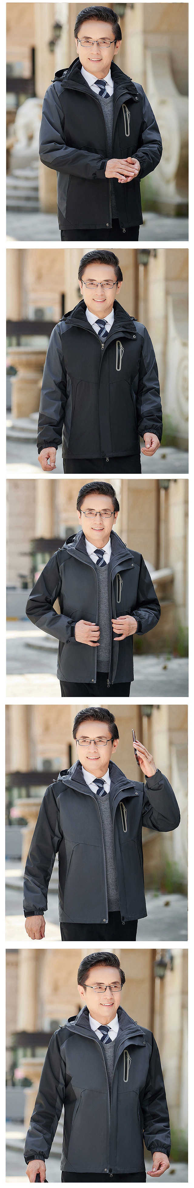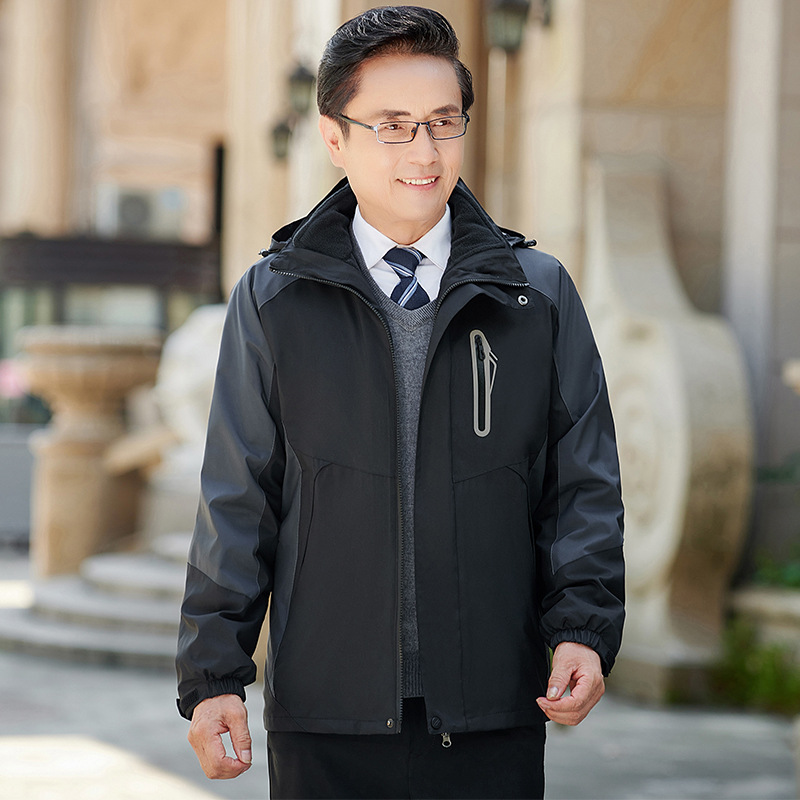 가을과 겨울 중년 및 노인 남자의 3-in-one 분리형 기모 두꺼운 노인 재킷 아빠의 겨울 코트스토어 가기