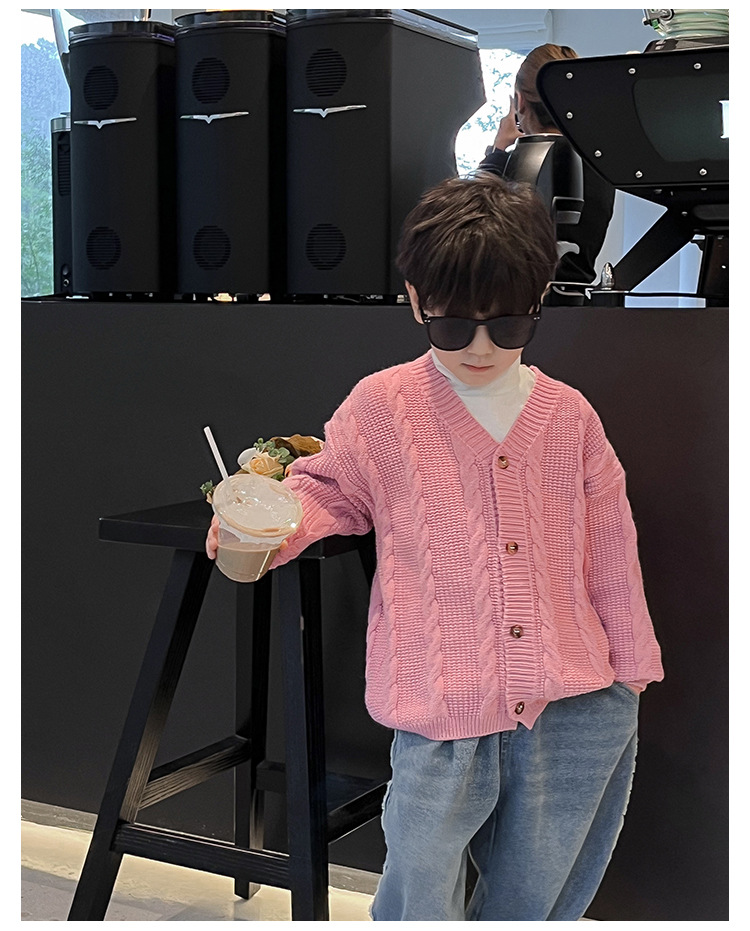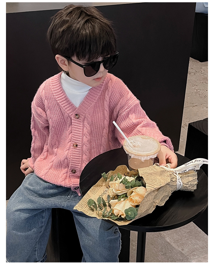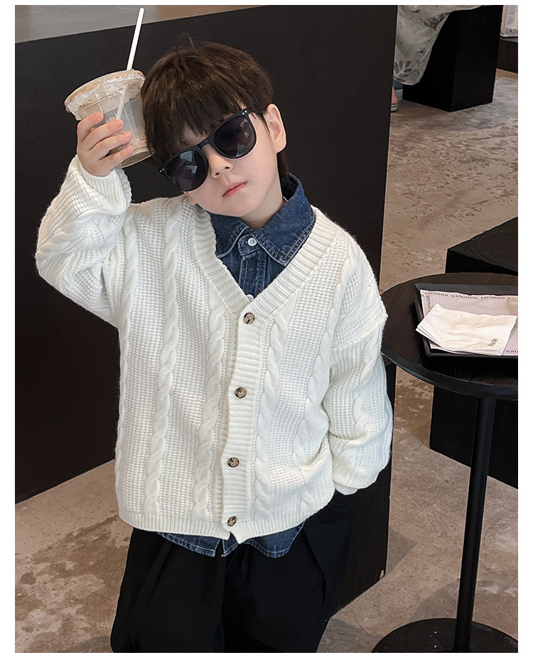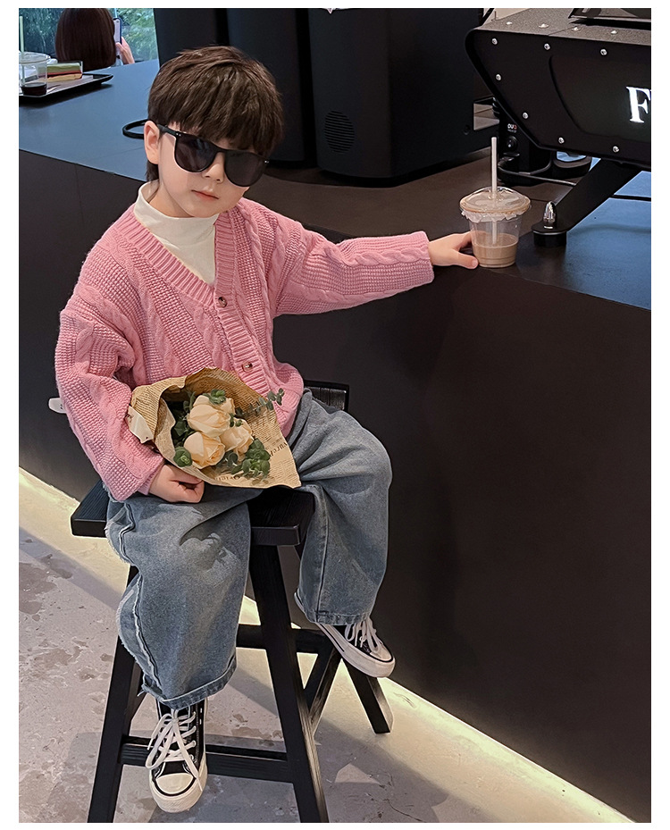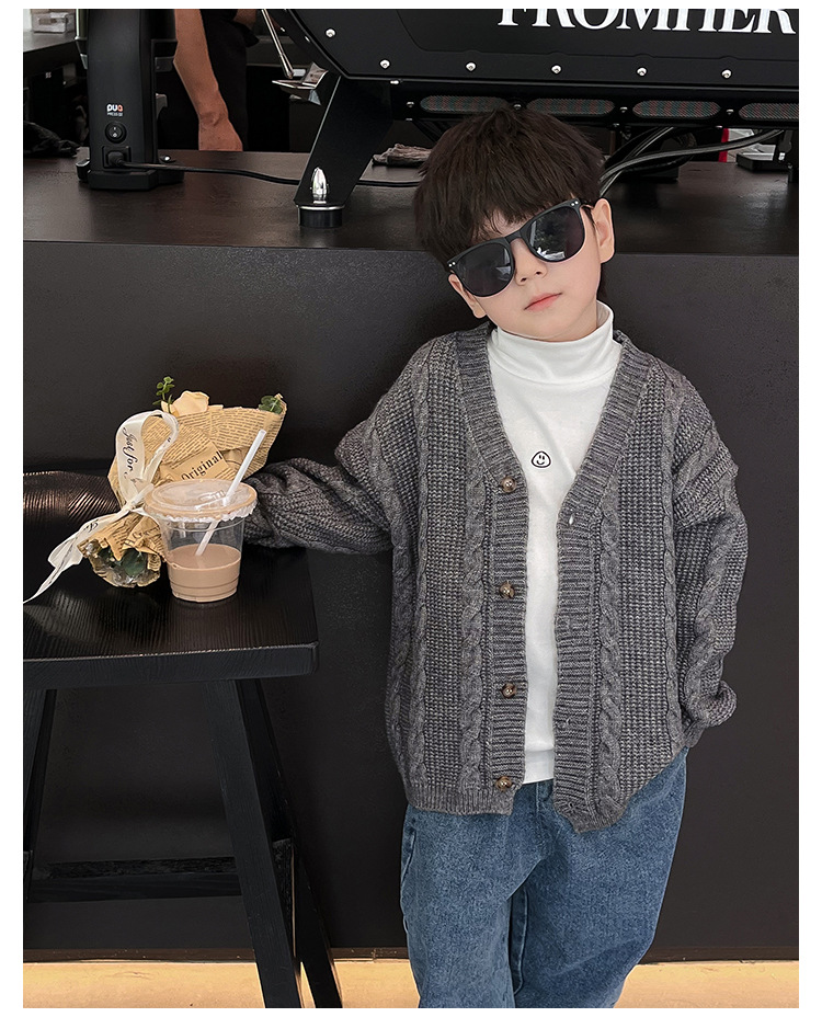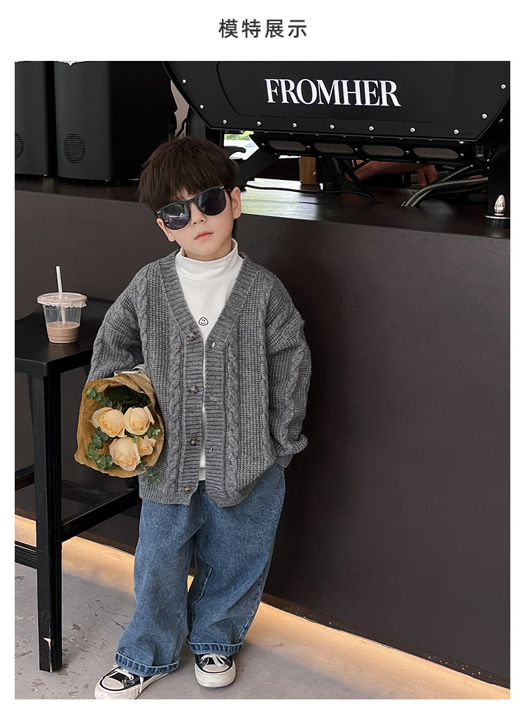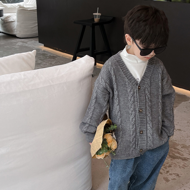 어린이 스웨터 2023 어린이 멋진 가을 새로운 한국 스타일 아기 니트 스웨터 웨스턴 스타일 단색 남아 스웨터 가디건 유행스토어 가기