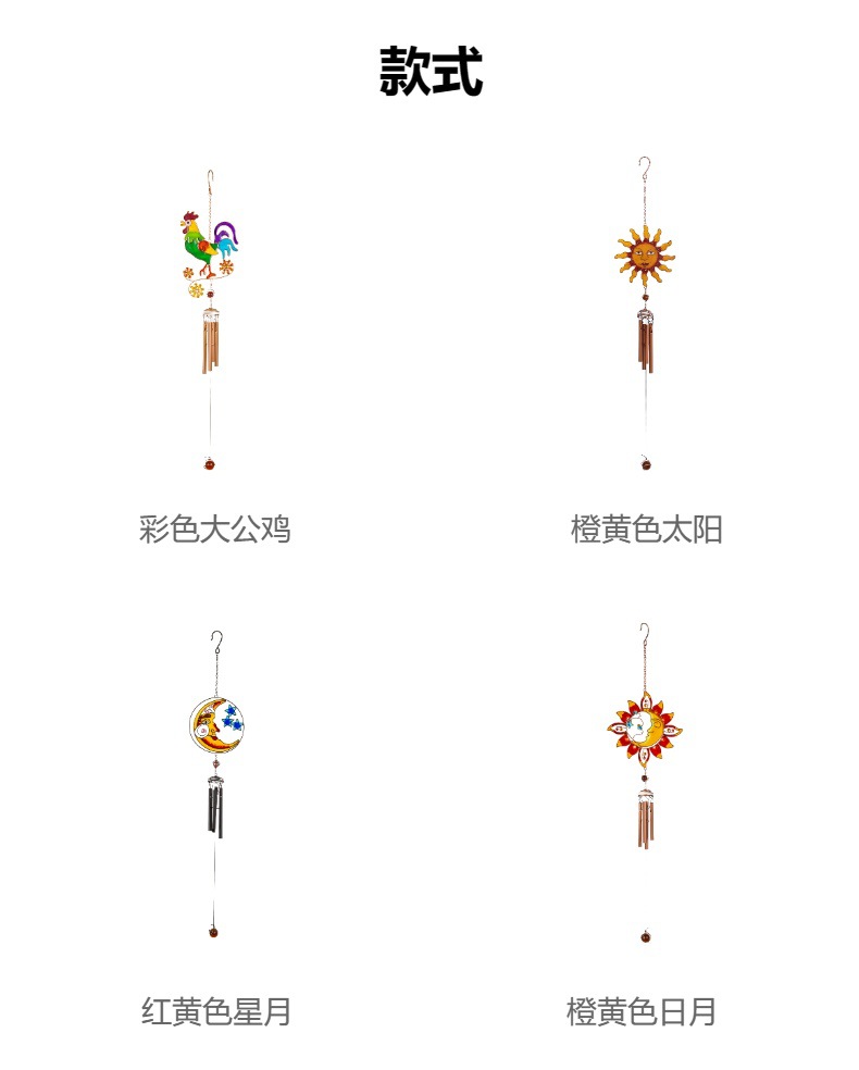 재고 수탉 바람 차임 양면 중공 오일 드롭 색 유리 펜던트 금속 일본식 튜브 빈티지 대나무 전용 크로스 보더스토어 가기
