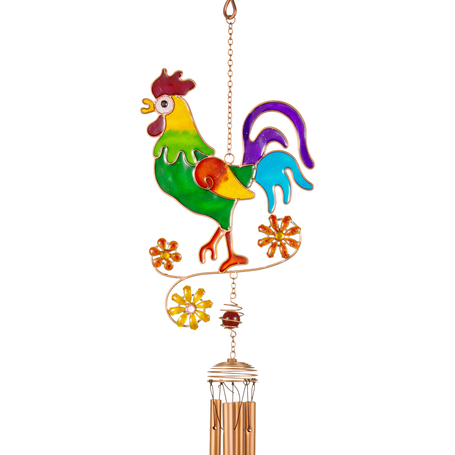 재고 수탉 바람 차임 양면 중공 오일 드롭 색 유리 펜던트 금속 일본식 튜브 빈티지 대나무 전용 크로스 보더