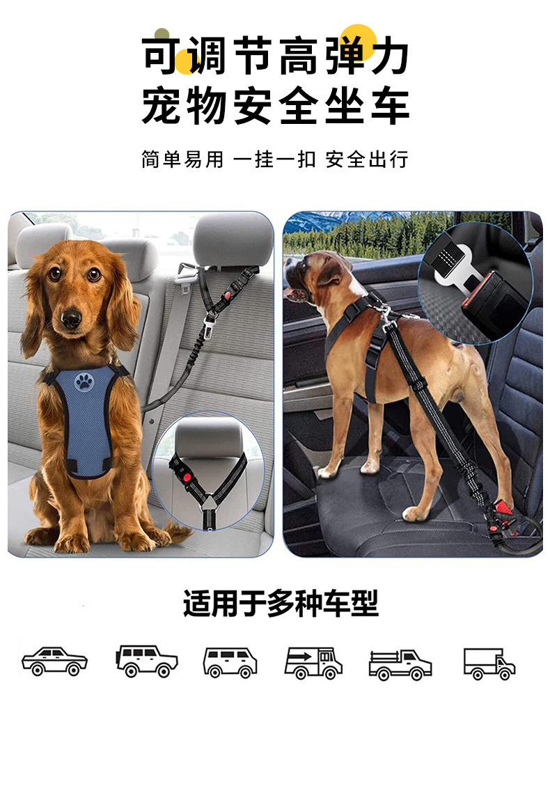 아마존 국경 간 애완 동물 제품 후크 자동차 안전 로프 조정 가능한 개 걷는 뒷좌석 벨트스토어 가기