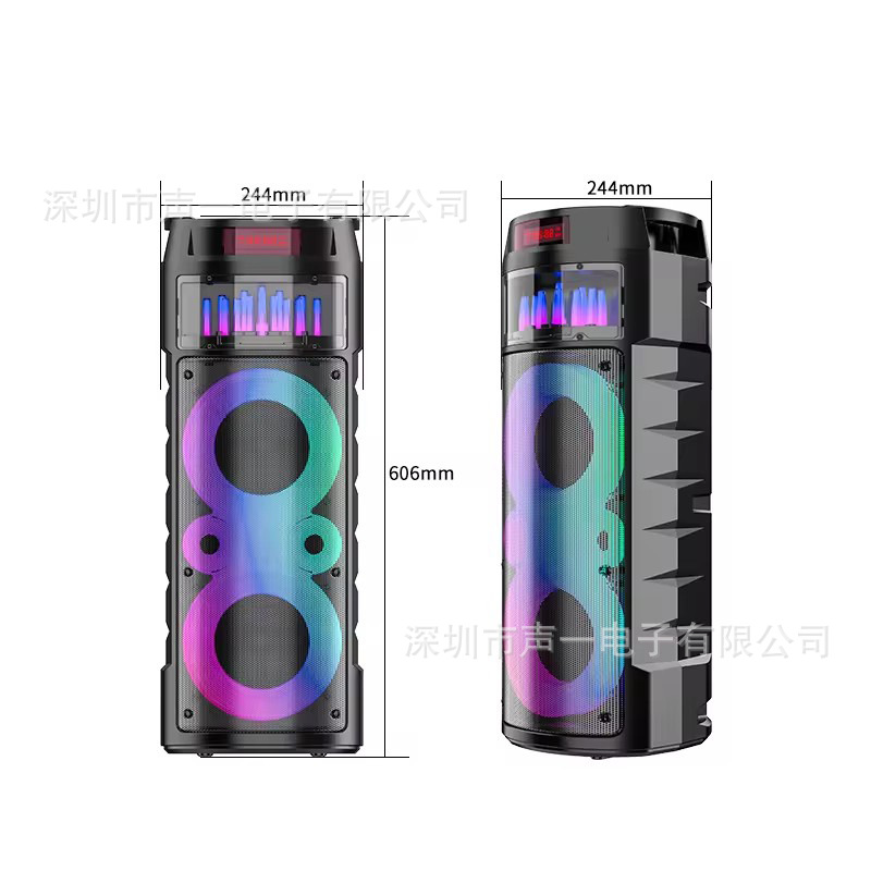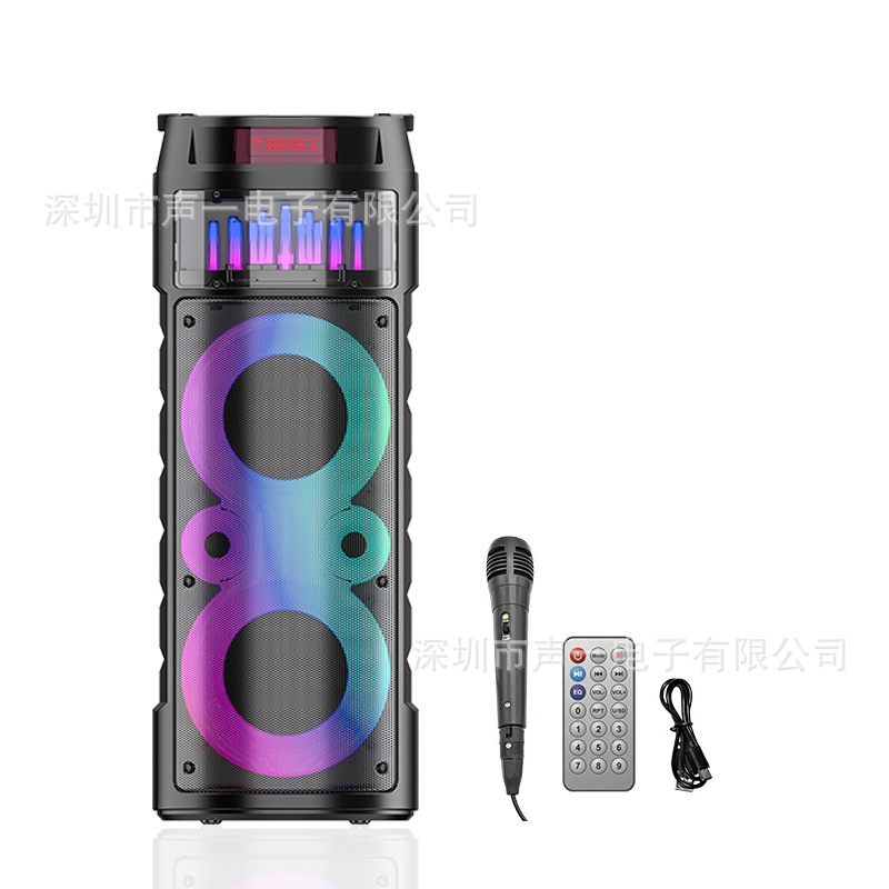 Cross border private model dual 6.5-inch fountain RGB color light Bluetooth speaker portable party microphone karaoke sound system