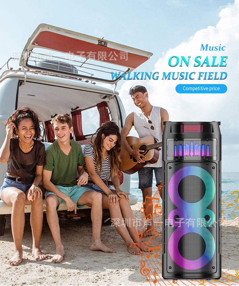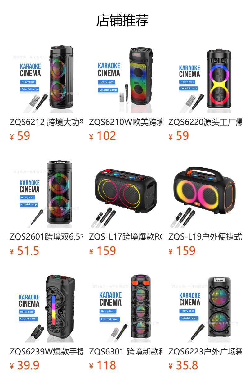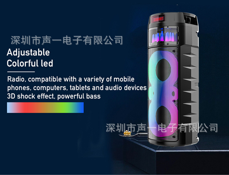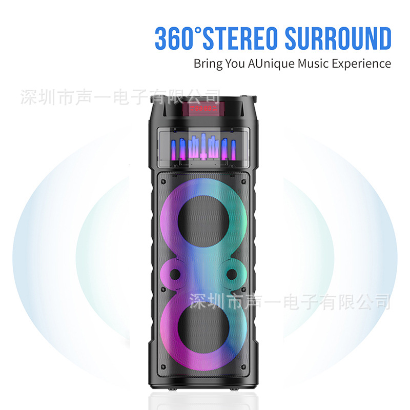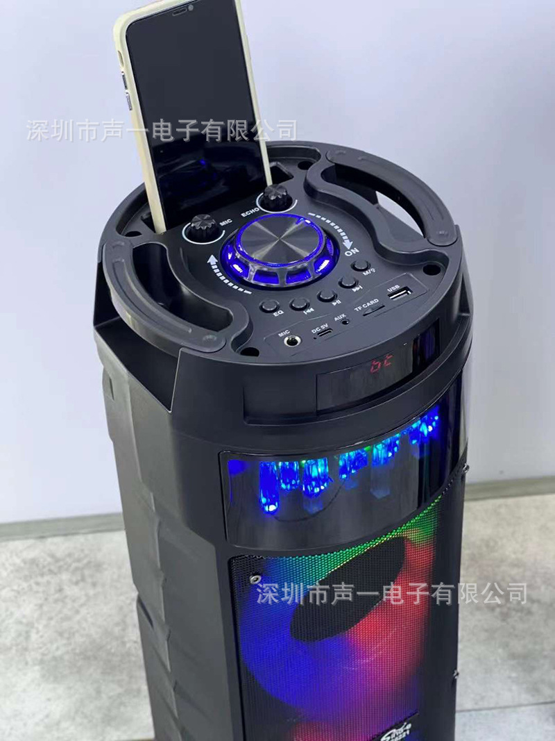 JQS6221 跨境私模喷泉RGB彩灯蓝牙音箱便携式派对话筒k歌ECHO音响