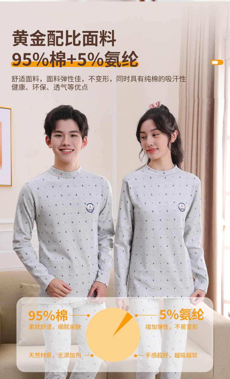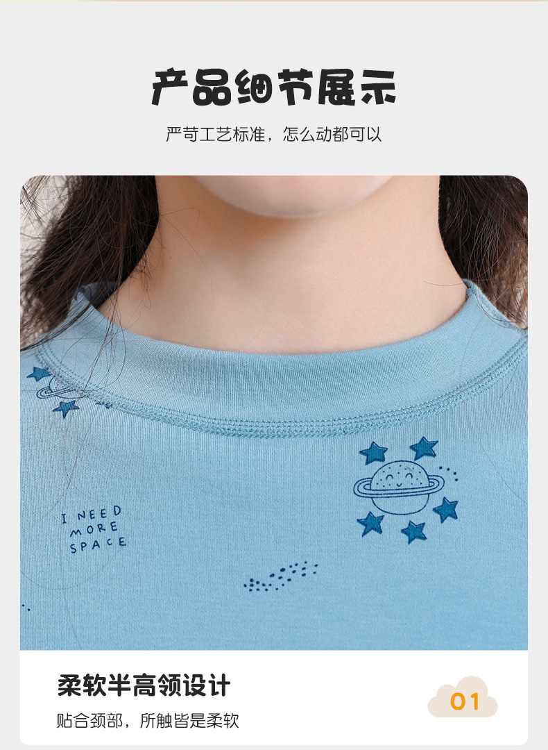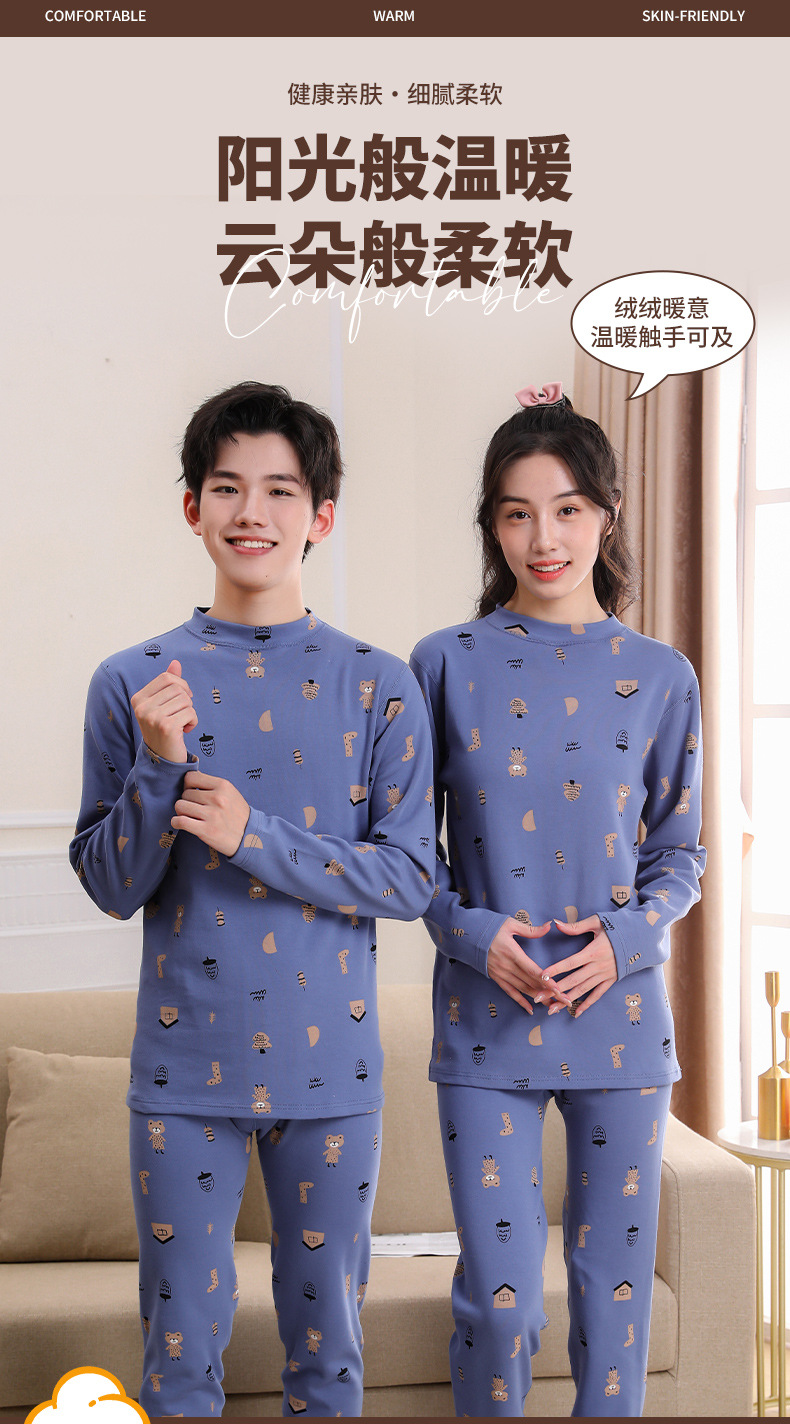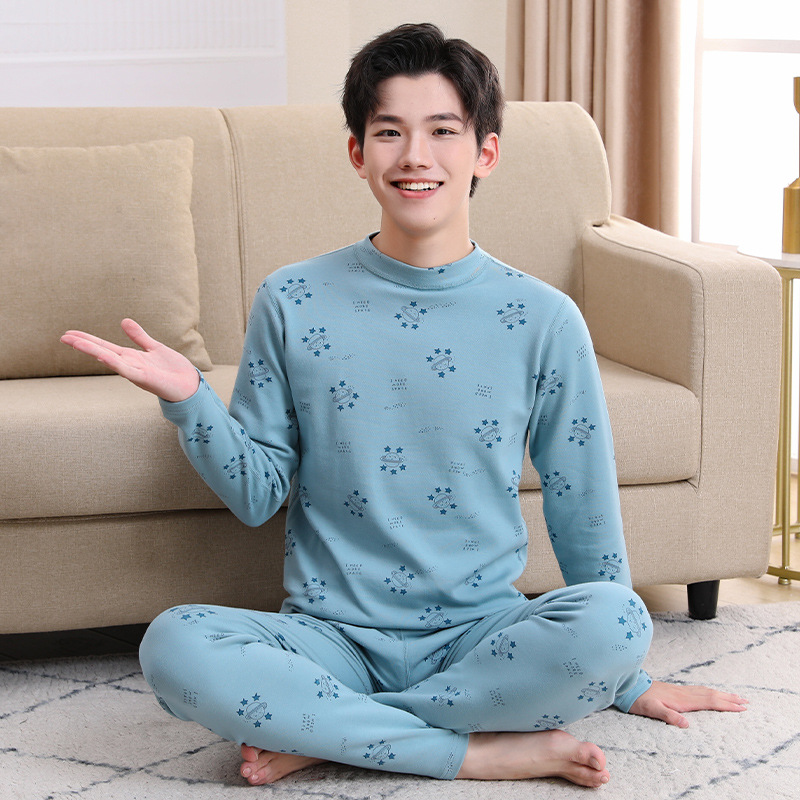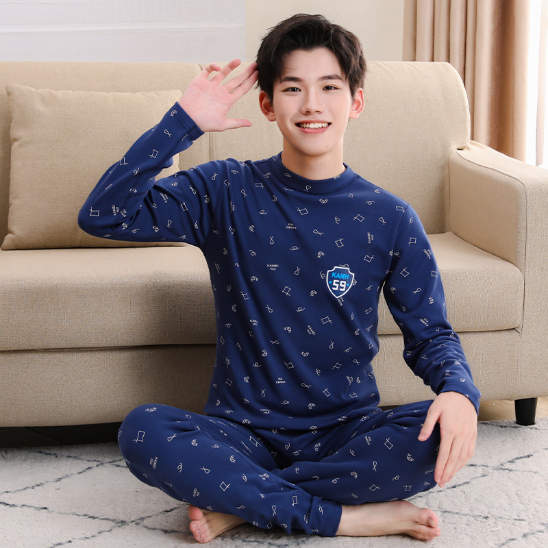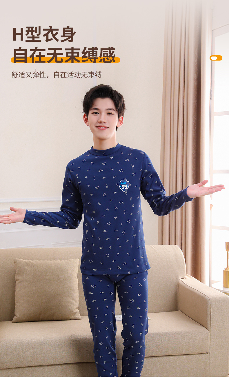 청소년 열 속옷 Shirong 면 세트 큰 어린이 학생 소년 소녀 가을 옷과 바지 하프 하이 칼라 가정 옷스토어 가기